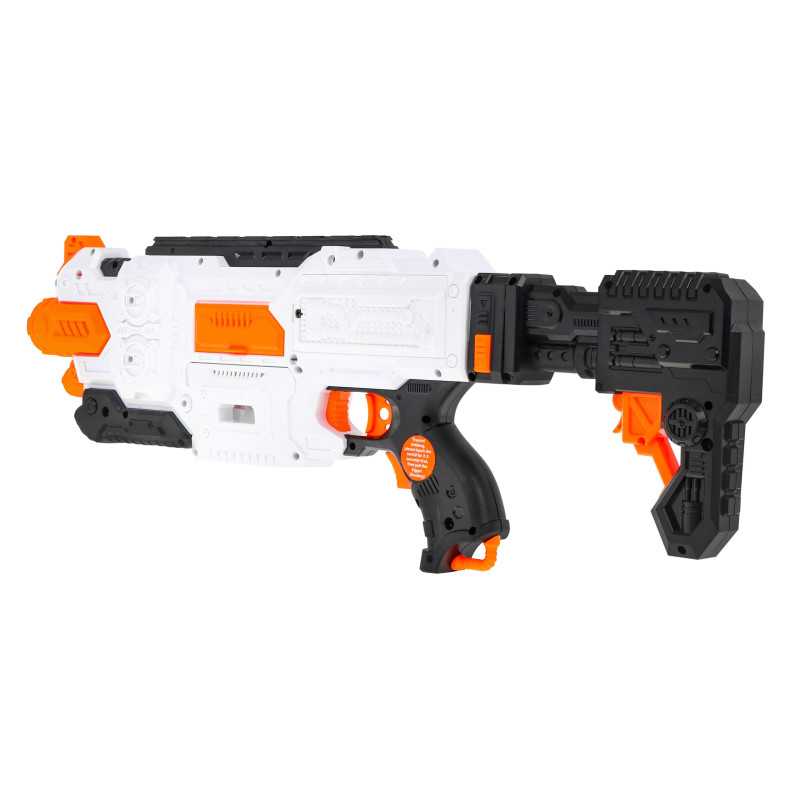 | Elektrinis pusiau automatinis šautuvas su taikikliu ir minkštomis kulkomis užtaisytu dėklu - tinkamas vaikams nuo 8 metų. Šautuvas yra itin tikslus ir jį labai lengva naudoti. Tiesiog įdėkite dėtuvę, paspauskite ir palaikykite įjungimo mygtuką, nusitaikykite ir paspauskite gaiduką.
