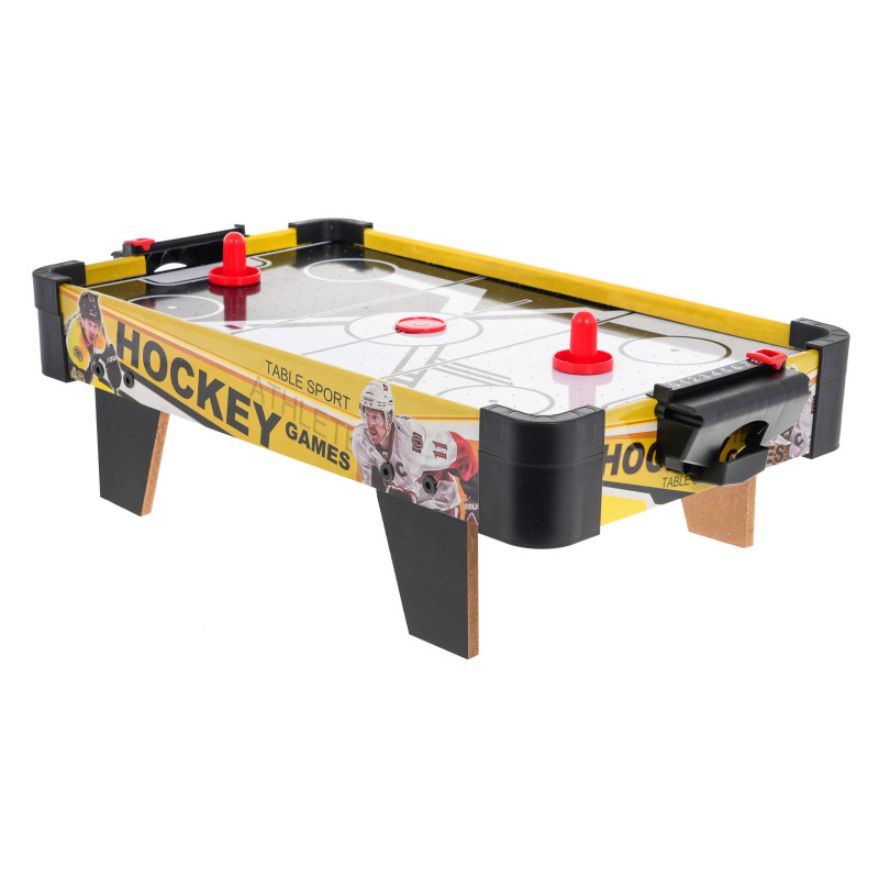 Cyber grove stalas - oro ritulys vaikams nuo 3 metų. AIR HOCKEY - tai populiaraus arkadinio žaidimo, skirto dviem žaidėjams, rūšis. Žaidimui naudojamas specialiai paruoštas stalas. Stalo paviršius padengtas skylutėmis, pro kurias pučiamas oras. Taip sukuriama oro pagalvė, kuria ritulys slysta nesiliesdamas su žeme. Žaidėjai stovi priešingose stalo pusėse. Kiekvienas žaidėjas naudoja specialų plastikinį įrankį, kartais vadinamą grybuku, kuris atlieka raketės funkciją. Šiuo įrankiu žaidėjai muša ritulį. Žaidimo tikslas - įmušti ritulį į priešininko vartus. Ritulys juda dideliu greičiu. Žaidimas paprastai nutraukiamas, kai vienas iš žaidėjų pasiekia iš anksto nustatytą taškų skaičių (paprastai septynis arba devynis) arba pasibaigus nustatytam laiko limitui. | |