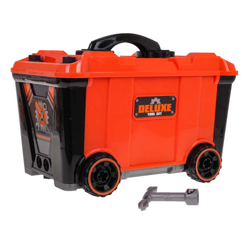 -lagaminas-dirbtuvės, - gręžtuvas-suktuvas, - atsuktuvo priedas, - 3 x keičiami antgaliai, - gręžimo antgalis su elektriniu pjūklu, - plaktukas, - plokščias atsuktuvas, - atviras ir žiedinis veržliaraktis, - Prancūziškas veržliaraktis, - veržliarakčiu, - apsauginiai akiniai, - apsauginė kaukė, - matavimo puodelis, - medžio pjūklas, - žnyplės, - rankinis pjūklas, - spaustukas. - matuoklis, - 4 lagamino ratai, - 3 prisukami elementai, - varžtai, - išsiplėtimo varžtai, - veržlės. |
