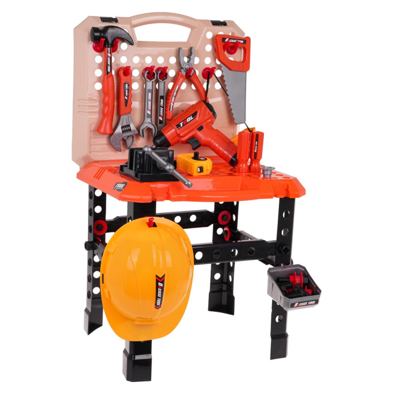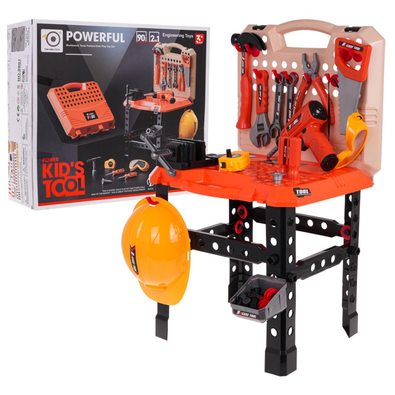 Gausiai aprūpintas rinkinys mažajam meistrui, su galimybe surinkti dirbtuves arba įrankių lagaminą, skirtas vaikams nuo 3 metų amžiaus. Rinkinį sudaro 90 elementų, tokių kaip: dirbtuvių ir lagamino konstravimo dalys, veržliarakčiai, replės, reguliuojamas veržliaraktis, plaktukas, interaktyvus suktuvas-gręžtuvas, spaustuvai (vairai), apsauginiai akiniai, varžtai įsukimui, antgaliai (lizdai), atsuktuvai ir kt. Visi elementai pagaminti iš geriausios kokybės plastiko. Suktuvas-gręžtuvas maitinamas 2 x AA 1,5 V baterijomis (nepridedamos), suka ir atsisuka varžtus, o veikimo metu skleidžia tikram prietaisui būdingus garsus ir turi apšvietimą – šviečiantį raudoną šviesos diodą priekinėje atsuktuvo dalyje.