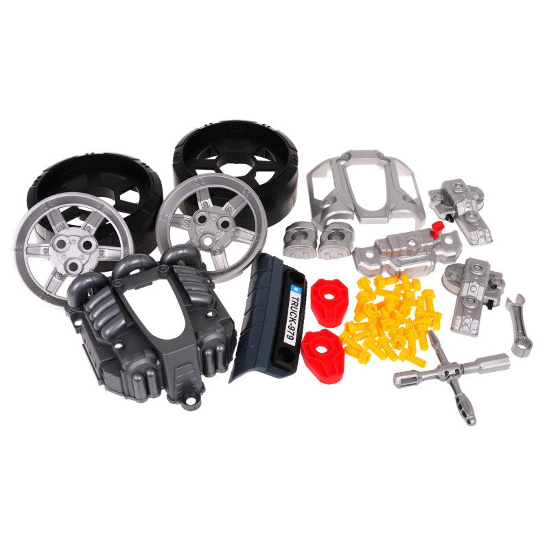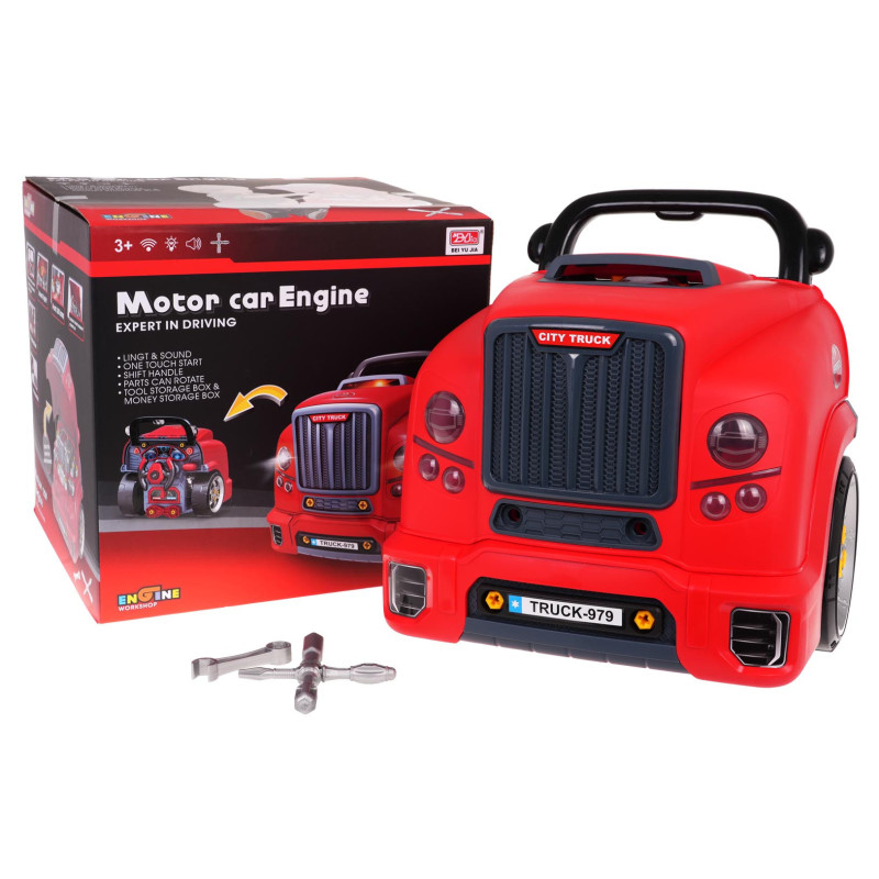 Interaktyvus žaislas – raudono sunkvežimio priekis su atidaromu variklio dangčiu ir prietaisų skydeliu, skirtas vaikams nuo 3 metų amžiaus. Rinkinį sudaro sunkvežimio dalys ir įrankiai, reikalingi surinkimui bei išardymui, tokie kaip atsuktuvas ar veržliarakčiai. Po transporto priemonės variklio dangčiu yra didelis, išardytas variklis, kurį vaikas gali išardyti į pagrindinius elementus. Žvakės ir ratai taip pat gali būti keičiami. Prietaisų skydelyje yra transporto priemonės paleidimo mygtukas su variklio užvedimo garsais, vairas su garso signalu ir avarinis signalas. Po vairu yra daiktadėžė, į kurią galima sudėti visus reikalingus įrankius, varžtus, rankenėles. Žaislas turi patogią nešiojimo rankeną. Maitinamas 3 x AA 1,5 V baterijomis (nepridedamos). Šis žaislas mažajam mechanikui lavina rankų įgūdžius, smulkiąją motoriką ir rankų bei akių koordinaciją.