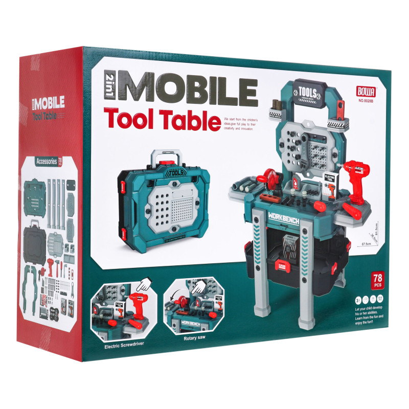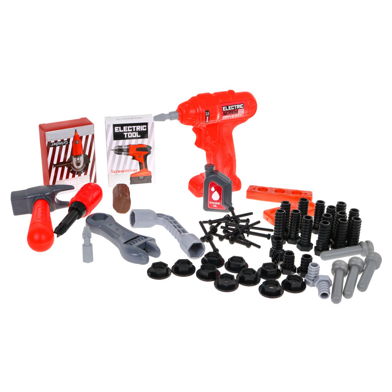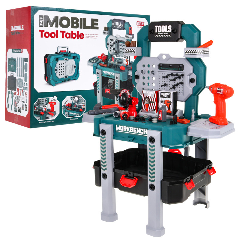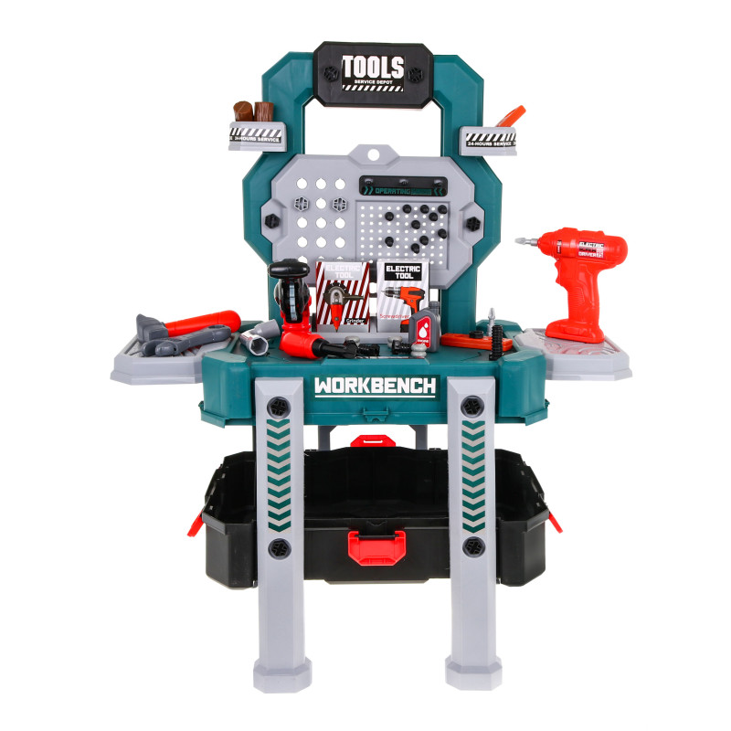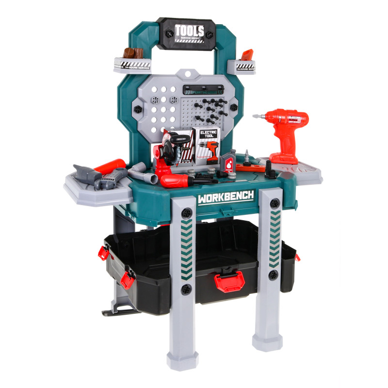 | Gerai įrengtos dirbtuvės su grąžtu, pjūklu ir priedais - tai pasiūlymas vaikams nuo 3 metų. Rinkinį sudaro 78 elementai, kurie primena tikrus įrankius. Gręžtuvas / pjūklas skleidžia garsus įsukant ir išsukant varžtus ir turi du keičiamus antgalius. Atskirus įrankius galima laisvai išdėstyti ant praktiško stovo. Pasibaigus linksmybėms, visus elementus galima uždaryti į didelį įrankių dėklą su patogia rankena. Žaislas maitinamas 2 x AA tipo baterijomis (į komplektą neįeina). | |