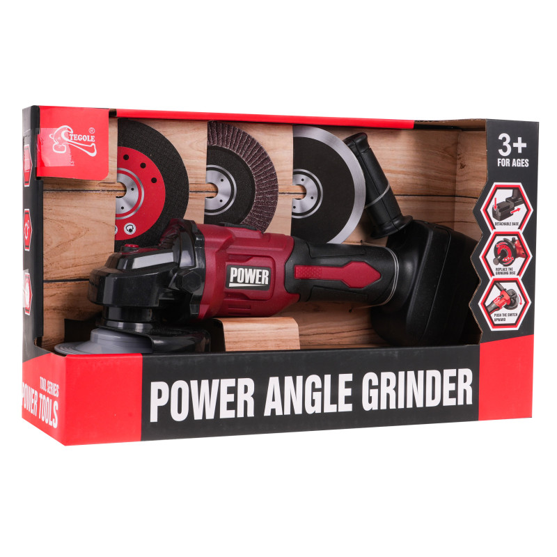 Akumuliatorinis šlifuoklis vaikams nuo 3 metų. Šlifuoklis atrodo lygiai taip pat kaip tikras, o visos jo funkcijos yra visiškai saugios vaikams. Vaikui palietus diską ranka, diskas nustoja suktis. Rinkinyje taip pat yra trys keičiami skirtingų galūnių ciferblatų piešiniai. Pajudinus žaislo viršuje esantį juodą mygtuką, malūnėlis pradeda sukti diską ir skleisti malimo garsus. Malūnėlis turi nuimamą bateriją ir rankeną, kurią galima pritvirtinti dešinėje arba kairėje pusėje. Žaislą maitina 2 x AA 1, 5 V baterijos. Baterijos į komplektą neįeina. |