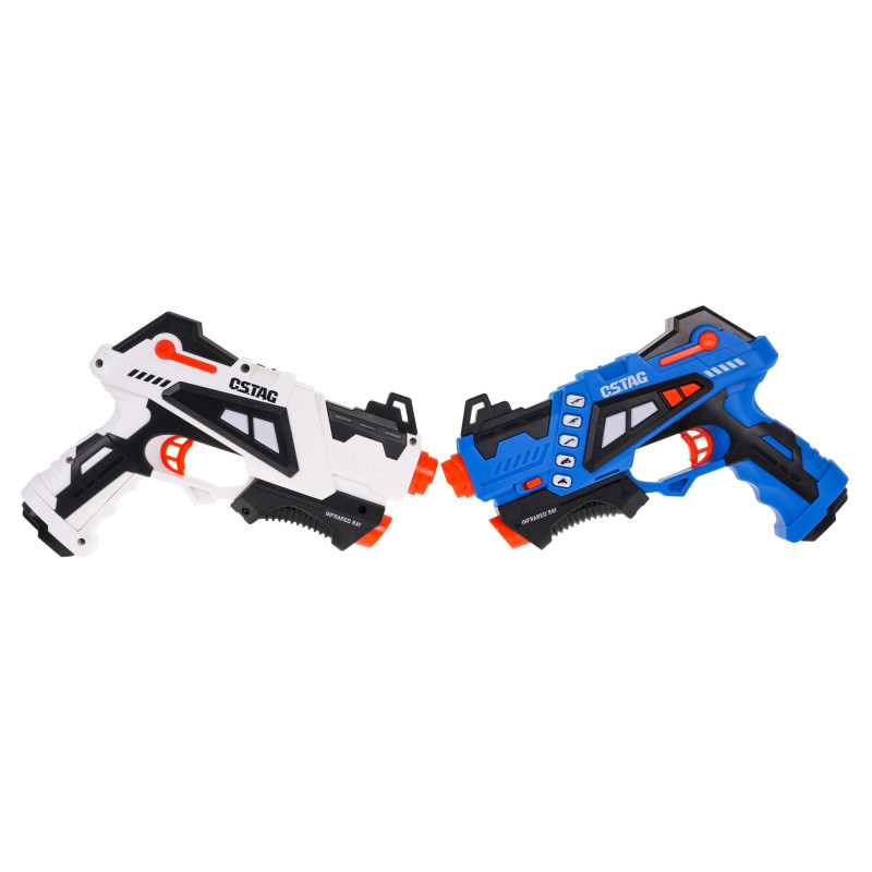- mėlynas lazerinis pistoletas, - baltas lazerinis pistoletas, - 2 x 3, 7 V pistoleto baterijos, - USB įkrovimo laidas (2 pistoletai vienu metu) - instrukcija. |