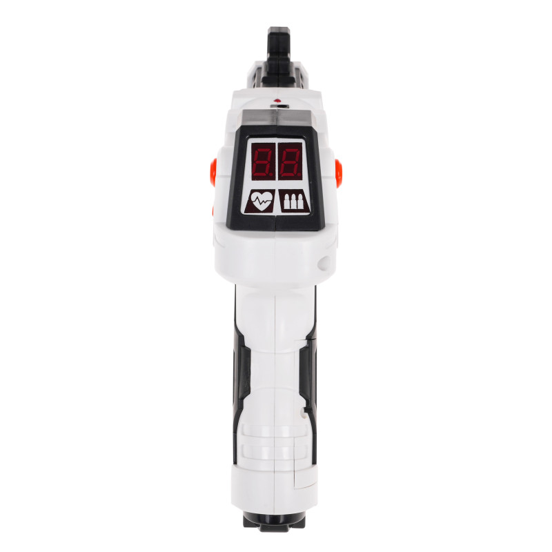 Lazerinių pistoletų rinkinys - tai pasiūlymas vaikams nuo 3 metų. Rinkinį sudaro 2 lazeriniai šautuvai. Pistoletai veikia infraraudonaisiais spinduliais, šiame rinkinyje naudojamas infraraudonųjų spindulių signalo spinduliavimas yra saugus vaikui ir nekenkia akims. Kiekvienas pistoletas turi gyvybės skaitiklį; po kiekvieno tikslaus šūvio ir pataikymo į priešininką jo pistoletas pypsės ir vibruos. Vibracijos ir šaudymo garsai suteiks nuostabių įspūdžių kiekvienam naudotojui. Pistoletai nėra sunkūs ir juos lengva laikyti rankoje. Mūšio nuotolis neturėtų viršyti 40 metrų. Galima rinktis iš penkių šaudymo režimų: vieno šūvio, lazerinio ginklo, šautuvo, kulkosvaidžio ir pistoleto. Galime sudaryti nuo dviejų iki keturių komandų: mėlynos, raudonos, žalios, baltos. Ginklai maitinami 3, 7 V x 2 akumuliatoriumi, akumuliatoriai įtraukti į rinkinį. Rinkinio konfigūracija - įjunkite maitinimo jungiklį ir sistema pagal numatytuosius nustatymus nustatys mėlynos komandos ir vieno šūvio režimą. - jei reikia, pakeiskite fotografavimo režimą, - sukurkite komandą, ne daugiau kaip 4 komandas (raudona - žalia - mėlyna - balta), - praktiškai įkraukite savo ginklą Ginklų režimai: Pataikęs prarandate 1 gyvybę, Lazerinis ginklas su 9 kulkomis, pataikę prarandate 1 gyvybę, Šautuvas su 6 kulkomis, pataikęs prarandate 2 gyvybes, Kulkosvaidis su 6 kulkomis, pataikę prarandate 2 gyvybes, Pistoletas automatas su 6 kulkomis, pataikęs prarandate 2 gyvybes. Pistoletas turi: - įjungimo mygtuką, - infraraudonųjų spindulių imtuvas, - yra 5 pistoleto tipo jungikliai, - įkrovimo prievadas, - surinkimo indikatoriaus lemputė, - komandos keitimo mygtukas, - vieno šūvio / kito šūvio perjungimo mygtukas, - šovinių ir pataikymų skaičiaus rodymas, - gaidukas, - perkrovimo mygtukas. |