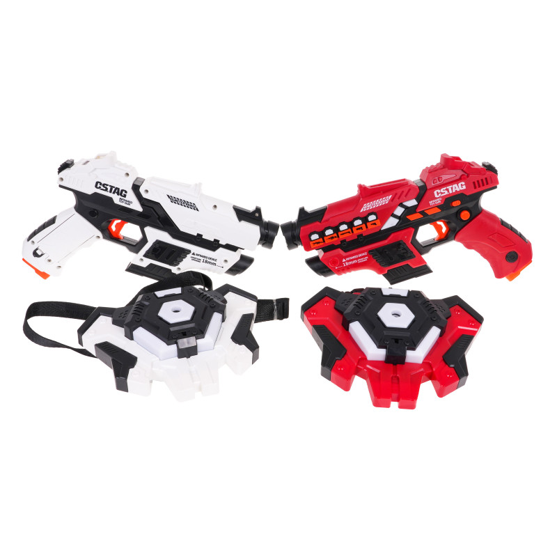 - raudonas lazerinis pistoletas, - baltas lazerinis pistoletas, - raudona liemenė, - balta liemenė, - vandens pipetė, - rankinis. |