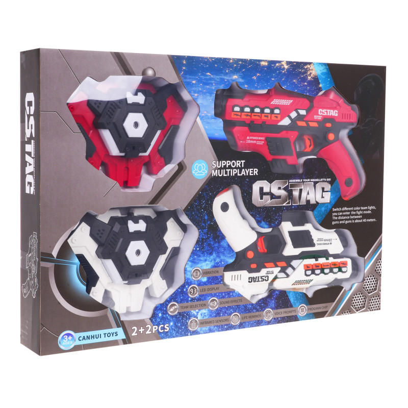 | Aprašymas | Lazerinis pistoletas ir skydas su dūmų funkcija |