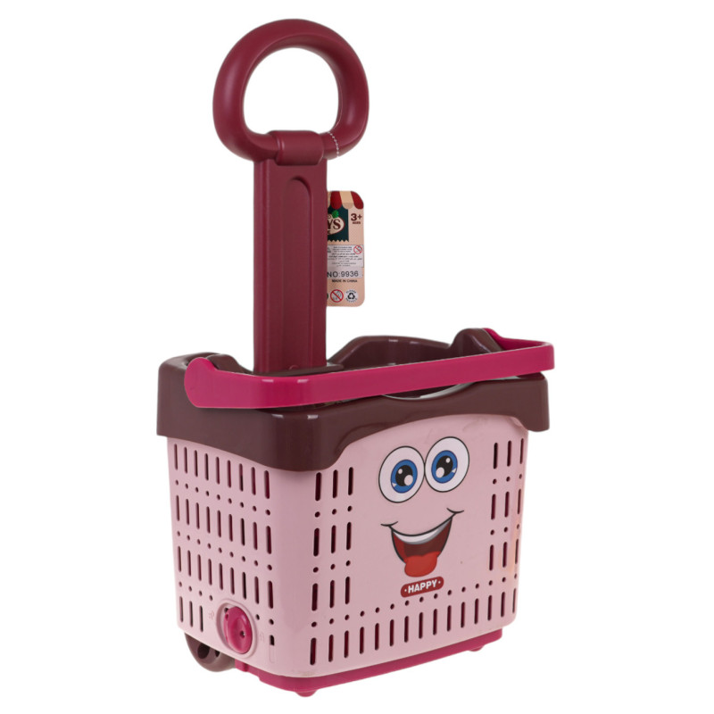 Pirkinių vežimėlio rinkinys su priedais, skirtas vaikams nuo 3 metų amžiaus. Rinkinį sudaro vežimėlis su maisto produktų, daržovių ir vaisių imitacijomis. Vežimėlis turi pakeliamą ir nuleidžiamą rankeną su stūmimo strypu ir rankena. Rankeną galima ištiesti, įtraukti, o visą vežimėlį nuleisti ir pakelti, priklausomai nuo to, kiek priedų norime jame laikyti. Vežimėlis turi ratus, kad būtų lengviau judinti žaislą. Rinkinys pagamintas ryškiomis spalvomis, skiriant dėmesį detalėms.