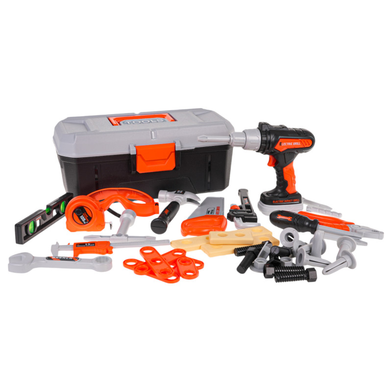 Gausiai aprūpintas įrankių rinkinys su interaktyviu suktuvu-gręžtuvu ir įrankių dėže, skirtas vaikams nuo 3 metų amžiaus. Rinkinys pagamintas iš geriausios kokybės plastiko ir turi 43 elementus. Be didelės, profesionaliai atrodančios įrankių dėžės, rinkinį taip pat sudaro: interaktyvus suktuvas-gręžtuvas su keičiamais antgaliais, apsauginiai akiniai, slankmatis (suportas), veržliaraktis, matavimo juosta (metras), atsuktuvas, plaktukas, rankinis pjūklas, replės, taip pat daug varžtų, priedų ir medienos varžtams įsukti. Suktuvas-gręžtuvas maitinamas 2 x AA 1,5 V baterijomis (nepridedamos). Jis įsuka ir išsuka varžtus, turi keičiamus antgalius ir nuimamą bateriją.