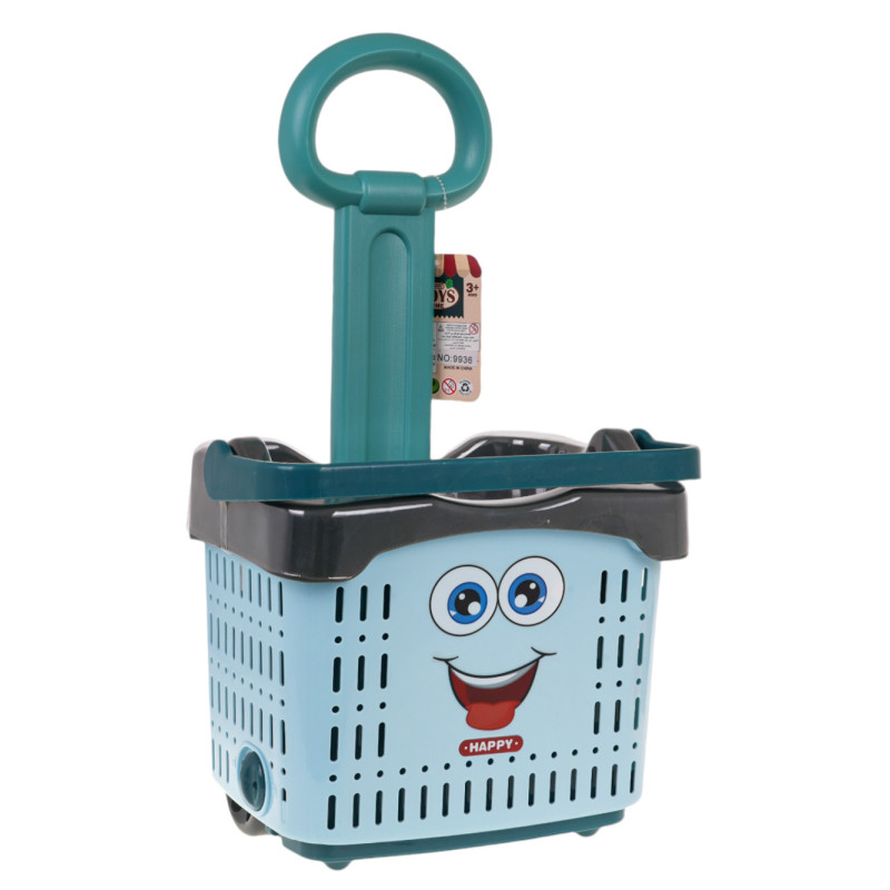 Pirkinių vežimėlio rinkinys su priedais, skirtas vaikams nuo 3 metų amžiaus. Rinkinį sudaro vežimėlis su maisto produktų, daržovių ir vaisių imitacijomis. Vežimėlis turi pakeliamą ir nuleidžiamą rankeną su stūmimo strypu ir rankena. Rankeną galima ištiesti, įtraukti, o visą vežimėlį nuleisti ir pakelti, priklausomai nuo to, kiek priedų norime jame laikyti. Vežimėlis turi ratus, kad būtų lengviau judinti žaislą. Rinkinys pagamintas ryškiomis spalvomis, skiriant dėmesį detalėms.