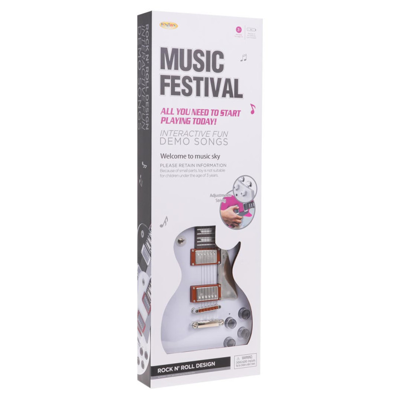 - baltos spalvos elektrinė gitara, - ausinės su mikrofonu, - diržas. |