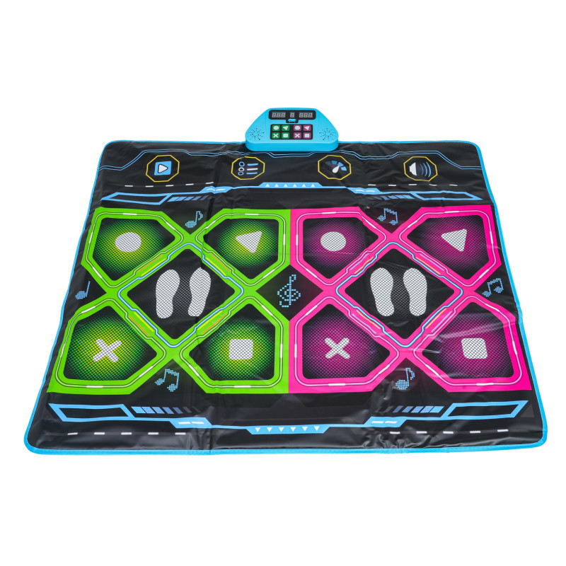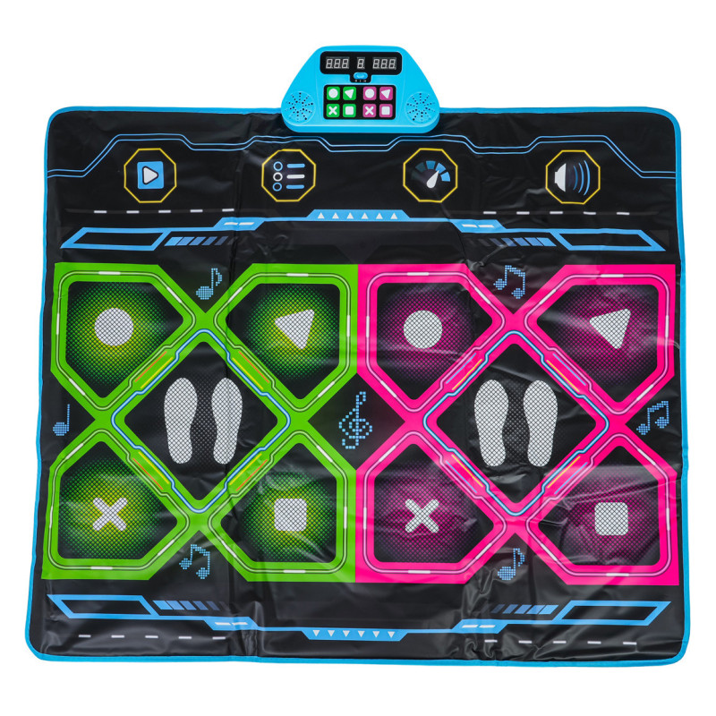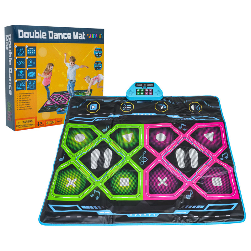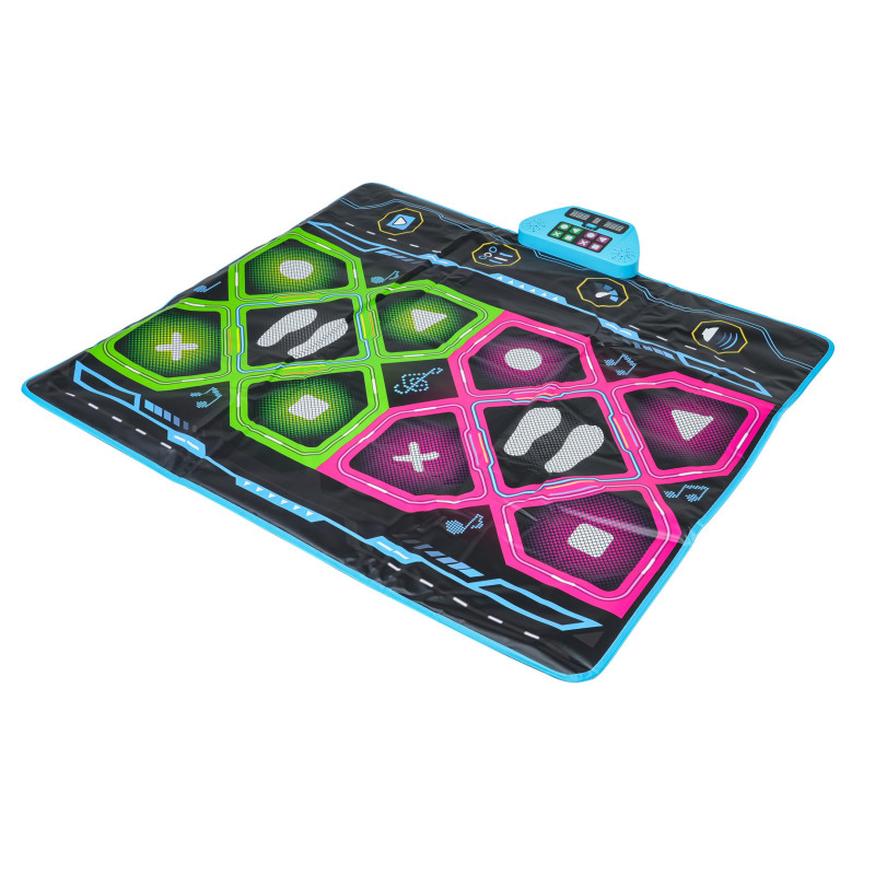 Dviejų asmenų šokių ir muzikos kilimėlis, skirtas vaikams nuo 3 metų amžiaus. Kilimėlis turi neslystantį pagrindą ir spalvingą viršų su įmontuotu ekranu bei jutikliniais valdikliais. Vienu metu gali šokti du asmenys, suteikiant laisvos formos šokių paviršių. Ekrane, esančiame viršutinėje kilimėlio dalyje, rodomi taškai, žaidimo lygiai, apšviesti laukai su įvairiomis formomis ir du garsiakalbiai. Ekranas maitinamas 3 x AA 1,5 V baterijomis (nepridedamos). Kilimėlis turi dvi pėdos formos vietas ir aštuonis lietimui jautrius laukus su apskritimo, trikampio, kryžiaus ir kvadrato formomis. Kilimėlis siūlo vieno arba dviejų žaidėjų režimus. Galima rinktis iš aštuonių skirtingų foninių muzikos takelių ir trijų sudėtingumo lygių. Dviejų žaidėjų režimu galite nustatyti, kad ekrane būtų rodomi vienodi raštai vienam žaidėjui arba skirtingi, taip pat yra atminties (memory) režimas. Kilimėlis pagerina motorinę koordinaciją, lavina muzikinę klausą ir yra puikus būdas aktyviai praleisti laiką kartu.