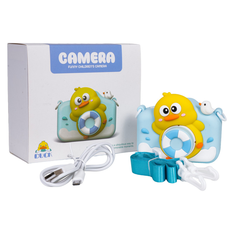 Fotoaparatas su įrašymo funkcija, papildomais nuotraukų efektais ir žaidimais, skirtas vaikams nuo 6 metų amžiaus. Rinkinys pagamintas iš aukštos kokybės medžiagų, skiriant dėmesį detalėms. Kiekviena nuotrauka gali būti dekoruota įvairiais linksmais efektais. Fotoaparato atmintyje taip pat yra penki įmontuoti žaidimai. Fotoaparatas be atminties kortelės gali padaryti iki 50 nuotraukų. Su 32 GTF kortele jis gali padaryti maždaug 8500 nuotraukų. Rinkinį sudaro virvelė, USB įkrovimo laidas ir instrukcijos, taip pat guminis objektyvo dėklas su linksma antyte ir gelbėjimo ratu. Fotoaparatas maitinamas įkraunama 5V 1000mAh baterija (pridedama).