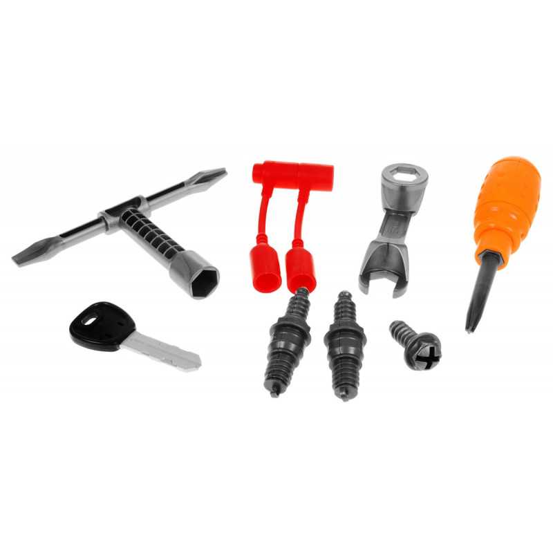 Papildoma atrakcija - įmontuotas tikroviškas variklio veikimo garsas, šviesos efektas ir judančios dalys - veikiantys variklio stūmokliai, besisukantis veržliaraktis, užvedimo raktelis ir kt.