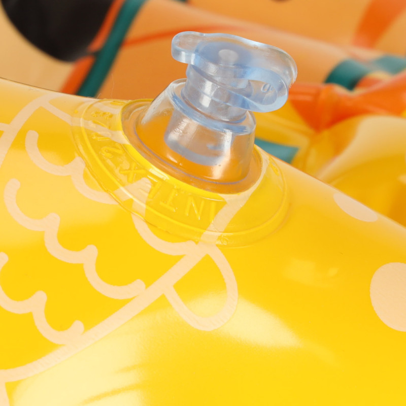 Liemenė pagaminta iš patvarios PVC medžiagos, ryškios geltonos spalvos, kuri užtikrina puikų jūsų vaiko matomumą vandenyje. Be to, liemenę puošia spalvinga povandeninių gyvūnų grafika, kuri tikrai patiks jūsų mažyliui. Reguliuojamas užsegimas dviem sagtimis užtikrina puikų prigludimą ir saugumą žaidžiant.