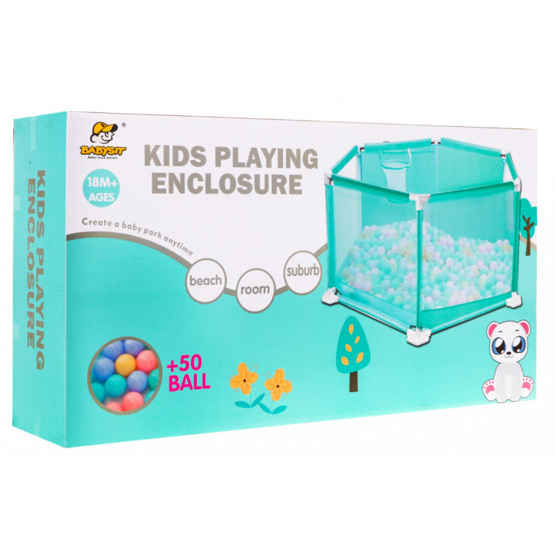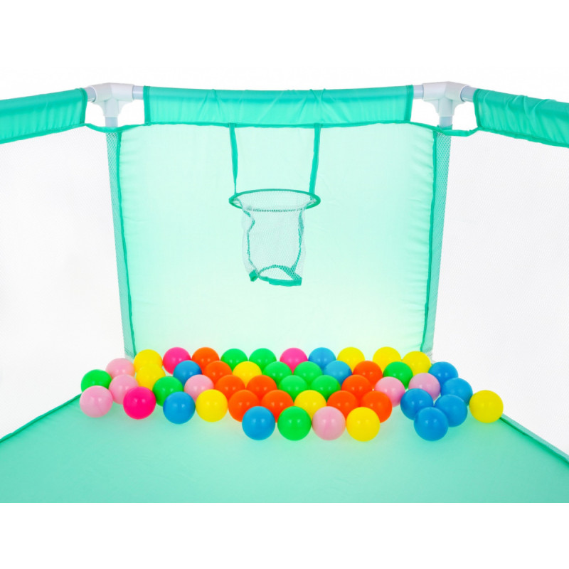 | Didelė, stabili žaidimų aikštelė su kamuoliukais - tai pasiūlymas kūdikiams nuo 18 mėnesių amžiaus. Ji suteikia kūdikiui erdvės judėti nerizikuojant susižeisti ar nukristi. Žaidimų lovytė pagaminta iš saugių medžiagų, joje nėra aštrių ir smulkių elementų, ją lengva valyti. Tvirtas rėmas užtikrina stabilumą ir ilgaamžiškumą. Pusė lovytės sienelių pagamintos iš skaidraus tinklelio, todėl visą laiką galime stebėti, kaip vaikas žaidžia. Lovytę galima lengvai perkelti iš kambario į kambarį, į lauką, į sodą, todėl vaikas visada bus saugus tėvams užsiimant kasdiene veikla. Žaidimų pavėsinėje papildomai yra krepšinio krepšys ir 50 kamuolių, ją galima naudoti kaip sausą baseiną. | |