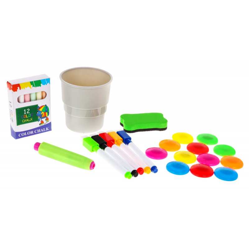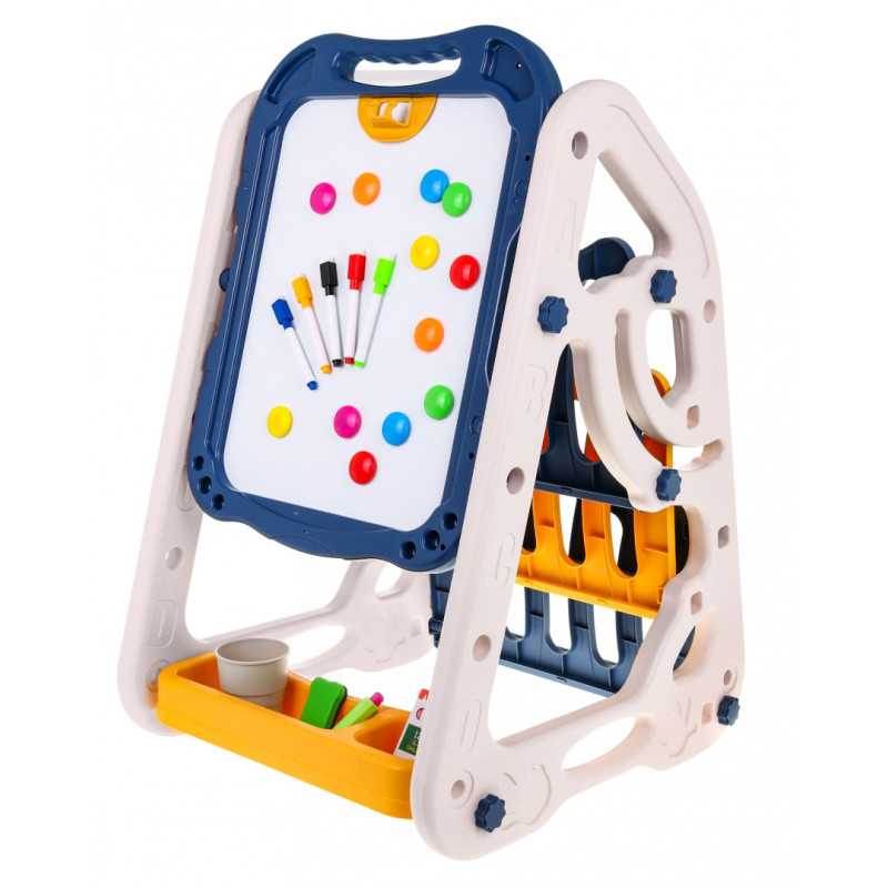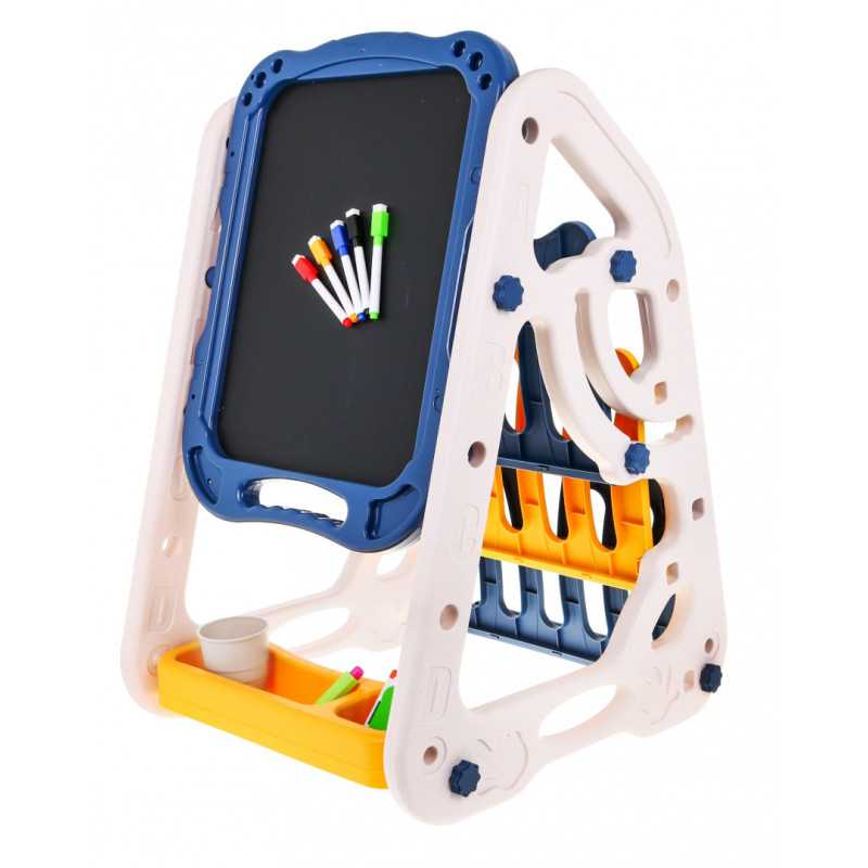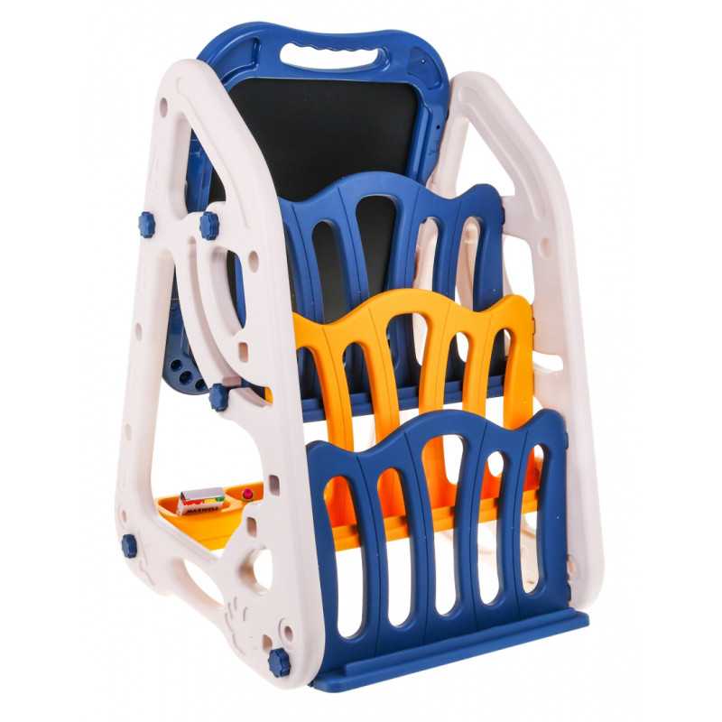 | Didelis daugiafunkcinis rinkinys, kurį sudaro dvipusė lenta ir lentynos knygoms, tinkamas vaikams nuo 3 metų. Viena lentos pusė yra magnetinė balta, o kita - kreidinė. Galima rašyti flomasteriais arba klijuoti spalvotus magnetukus ant balto lapo. Ant juodosios pusės galima piešti kreida. Rinkinyje yra specialus kreidos laikiklis, todėl mažųjų rankos išliks švarios. Kitoje lentos pusėje yra lentynėlės mažylių knygelėms. Rinkinys yra saugus, visos briaunos užapvalintos, o tai užtikrina naudojimo saugumą. Jį lengva surinkti ir išardyti, surinkimo instrukcijos pateikiamos ant pakuotės. Lentos dėka vaikas gali žaisti tuo pačiu metu lavindamas vaizduotę, koncentraciją ir rankų darbo įgūdžius |