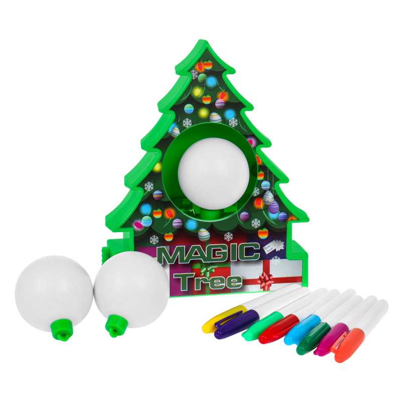 | Kūrybinis rinkinys kalėdiniams žaisliukams puošti, stebuklinga eglutė su garso ir šviesos efektais - tinkamas vaikams nuo 6 metų. Rinkinį sudaro Kalėdų eglutė, trys kalėdiniai žaisliukai ir aštuoni netoksiški spalvoti žymekliai. Į eglutės vidurį įdėkite kalėdinį rutulį ir papuoškite ją pagal savo sumanymą. Puošiant rutuliukas sukasi skambant žinomoms kalėdinėms dainoms ir mirksinčioms švieselėms, todėl visiems sukurs šventinę nuotaiką. Žaislą maitina 3 x AA 1, 5 V baterijos (į komplektą neįeina). | |