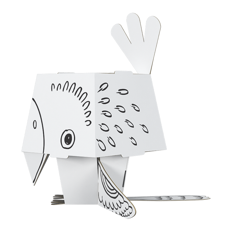 | Patogus, nedidelis naminio gyvūnėlio modelis su dideliu spalvinimo plotu. Pagamintas iš balto kartono. Tiksliai iškirpti elementai, lengvai surenkami be klijų ar žirklių. Vaizdinė instrukcija pakuotės kitoje pusėje. Sulankstomas modelis yra stabilus, patvarus ir lengvas. Profesionali grafika, spauda juodos spalvos. Tinka spalvinti kreidelėmis, flomasteriais, žymekliais ir dažais. Kartonas gerai sugeria drėgmę ir nesilanksto. |