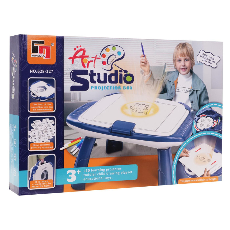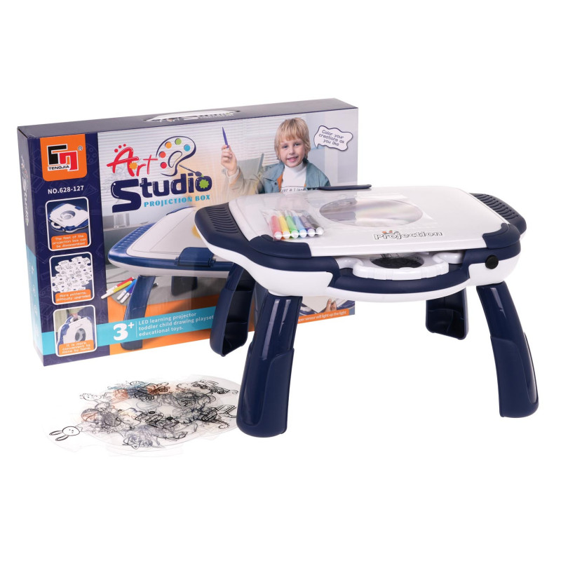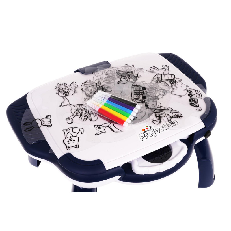 Piešimo projektorius, skirtas vaikams nuo 3 metų amžiaus. Projektorius suprojektuotas kaip staliukas. Rinkinį sudaro 12 diskelių su 4 skaidrėmis. Tiesiog įdėkite diskelį, ir ant piešimo staliuko paviršiaus atsiras spalvota skaidrė. Tada vaikas padeda popieriaus lapą ant staliuko ir apvedžioja rodomą vaizdą. Rinkinyje taip pat yra spalvotų markerių piešimui. Žaislas maitinamas 3 x AA 1,5 V baterijomis (nepridedamos).