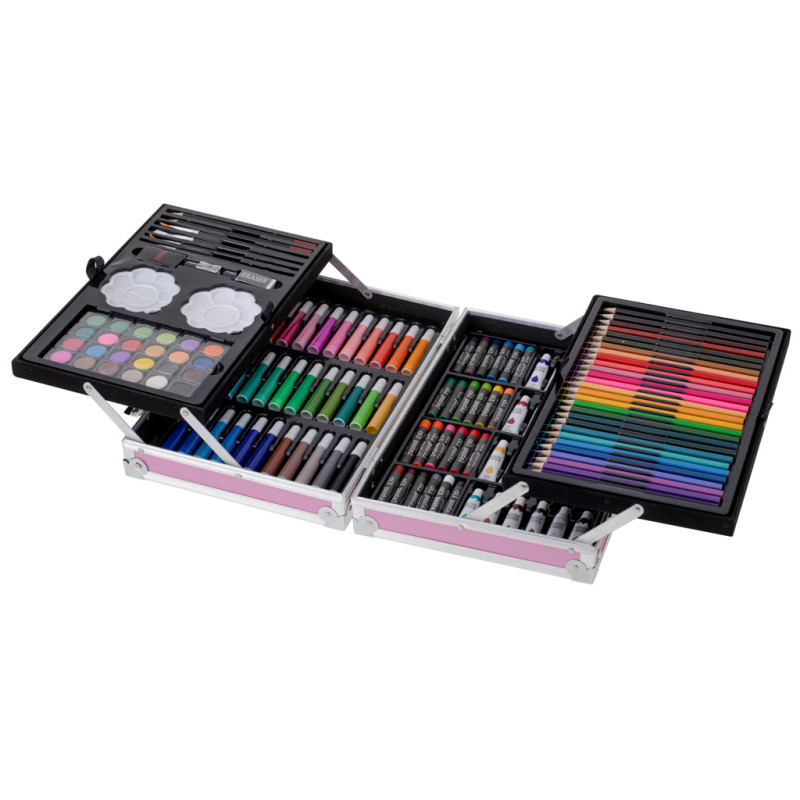 Rinkinys suteikia galimybę kurti paveikslėlius įvairiais būdais, nes jame yra daugybė priemonių, pavyzdžiui, pieštukų, žymeklių, kreidelių, akvarelinių dažų, tūbelinių dažų ir aliejinių pastelių. Be to, rinkinyje yra naudingų priedų, tokių kaip trintukai, teptukai, galąstuvas ir dažų paletės.