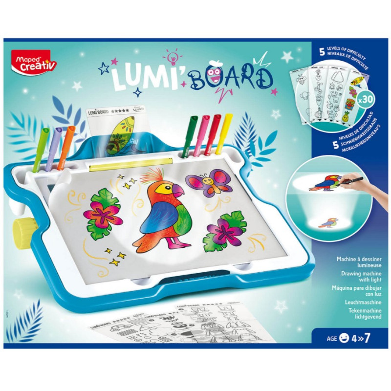 Piešimo mokymo prietaisas su projektoriumi. Idealus būdas jauniesiems dailininkams tobulinti piešimo techniką ir kartu fantastiškai smagiai praleisti minutes. Rinkinį paprasta naudoti - tereikia įjungti šviesą, po ekranu padėti trafaretą, ant viršaus uždėti tuščią popieriaus lapą ir baigta! Galite pradėti meninį darbą.
