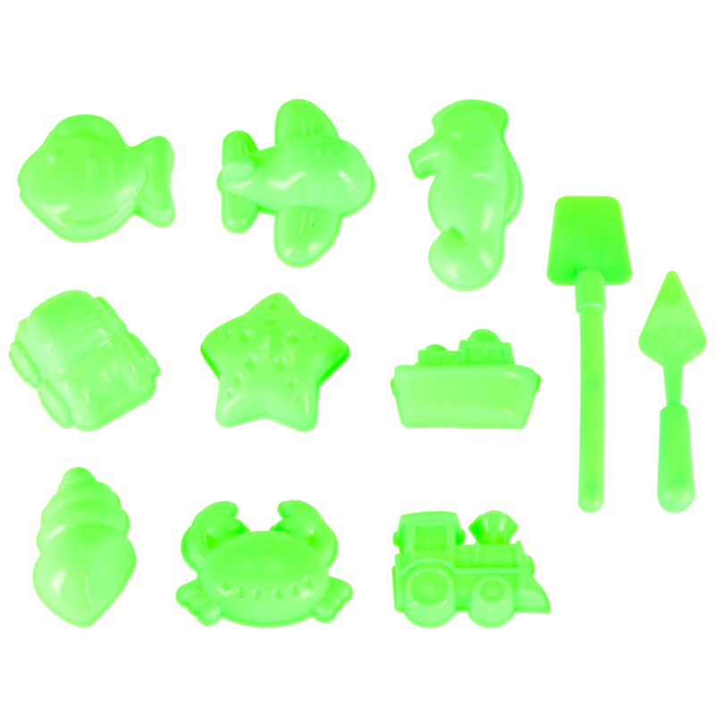 Rinkinyje yra 16 plastikinių formelių, kuriomis iš smėlio galima kurti įvairias formas ir modelius. Formeles lengva naudoti, jos suteikia jūsų kūriniams konkrečios struktūros elementų.