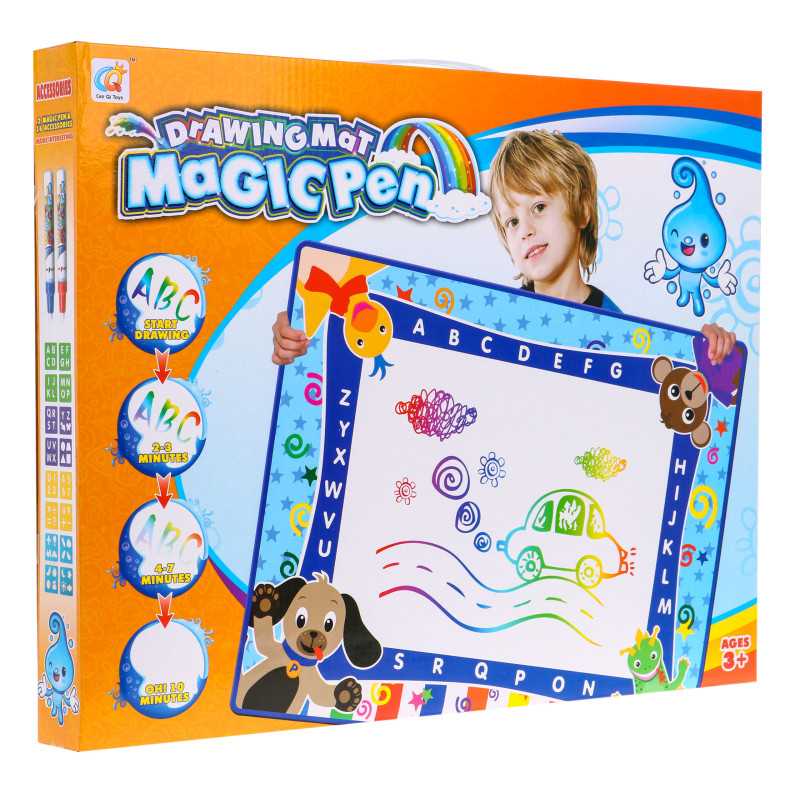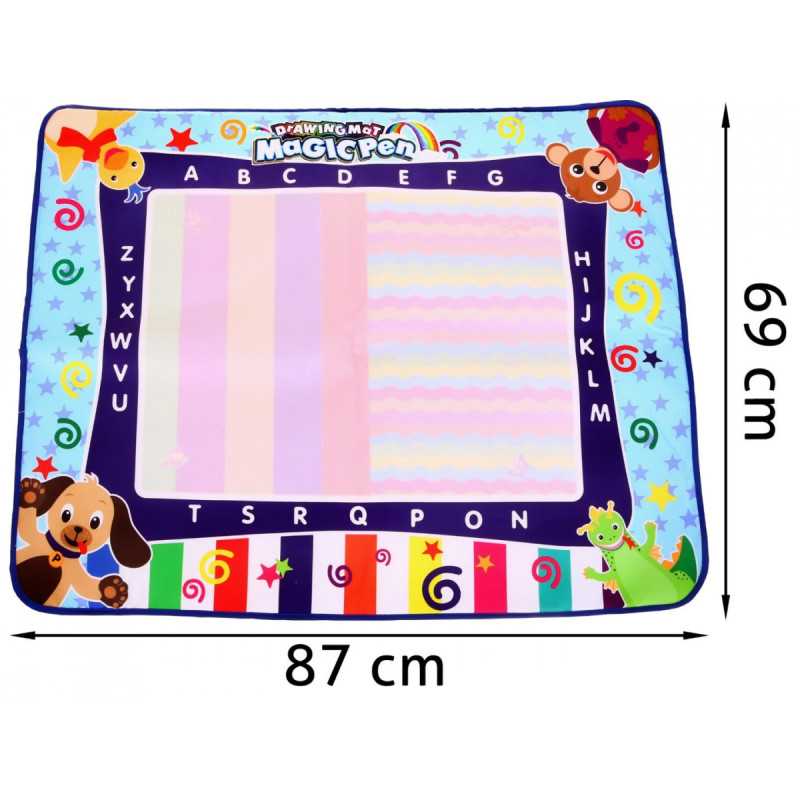 | Kilimėlis pagamintas iš malonaus liesti audinio, kurį galima lengvai sulankstyti. Skirtingai nei popieriaus lapai, kilimėlis yra daugkartinio naudojimo. Piešiame ant jo paviršiaus vandens rašikliu, kad atsirastų spalvotas piešinys, tada palaukiame 10 minučių, kol kilimėlis bus paruoštas pakartotiniam naudojimui. Kaip priedas prie rinkinio pridedami šablonai su įvairiais elementais perpiešimui. Kilimėlis sukurtas taip, kad vienu metu skatintų vaiko vystymąsi keliais lygiais. Žaisdamas vaikas mokosi loginio mąstymo, atpažinti formas ir spalvas. Kilimėlis leidžia vaikams būti savarankiškiems, saugiems ir kūrybiškai smagiai leisti laiką. |