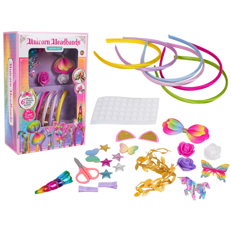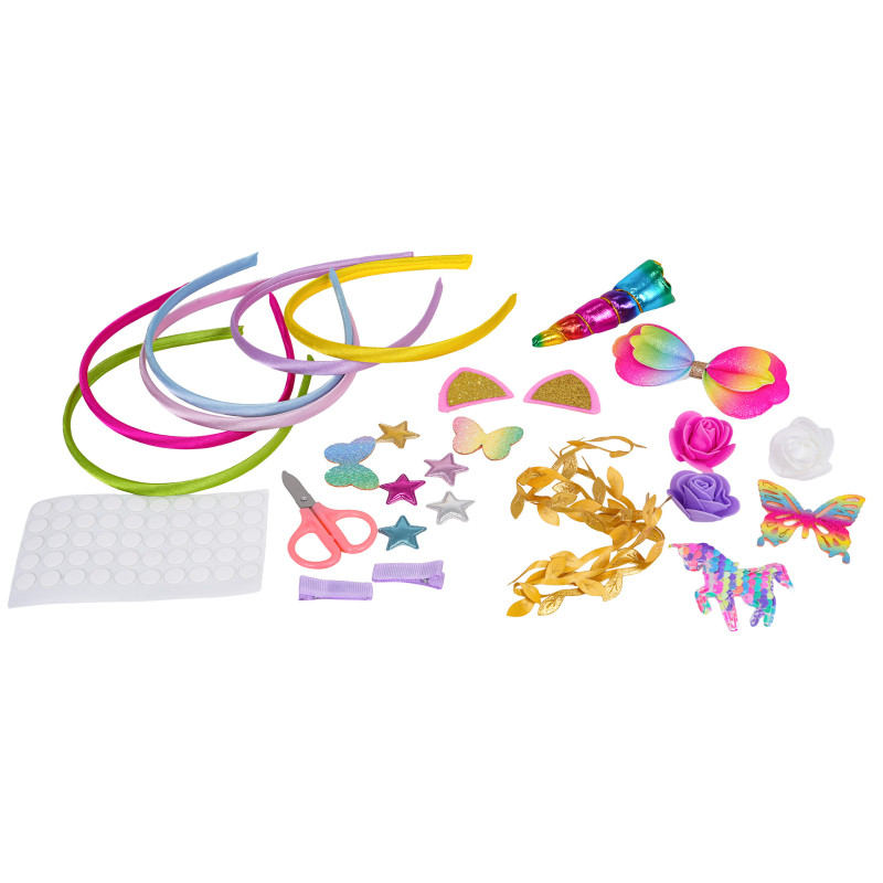 Kūrybinis plaukų lankelių gamybos rinkinys, skirtas vaikams nuo šešerių metų amžiaus. Rinkinį sudaro šeši plaukų lankeliai ir įvairūs priedai jiems dekoruoti: drugeliai, gėlės, žvaigždės ir kiti, plius lipnių taškelių lapas. Šis rinkinys lavina smulkiąją motoriką ir kūrybinį mąstymą. Pagaminti lankeliai puikiai tinka įvairioms progoms ir bus unikalūs, nes tik jūsų vaikas turės tokį vienintelį. Gaminant lankelį nereikia nei siūti, nei kirpti; tiesiog naudokite lipnius taškelius.