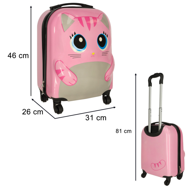 Vaikiškas kelioninis lagaminas su katiną vaizduojančia grafika bus puikus jūsų mažylio palydovas į bet kokius nuotykius.