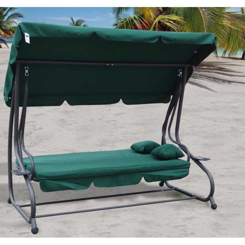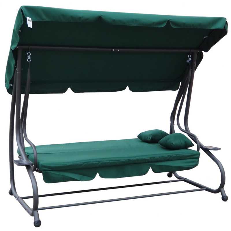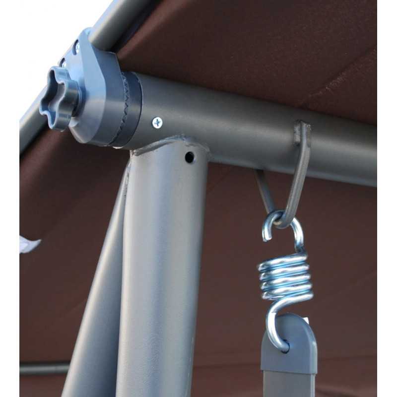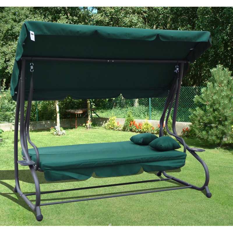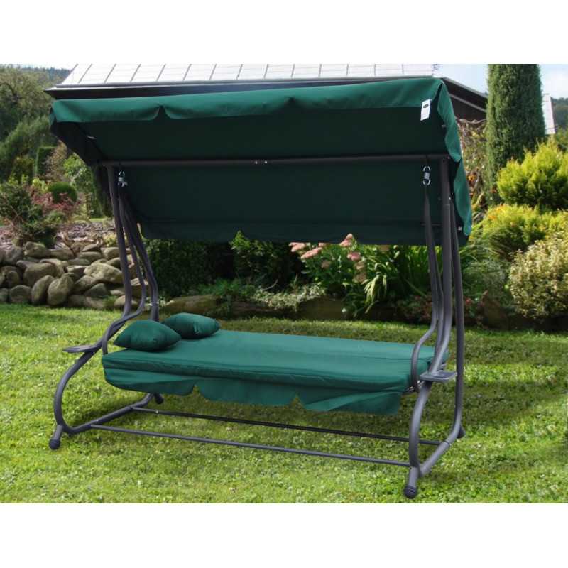 Sodo sūpynės su išleidžiama sėdyne ir reguliuojamu stogeliu,