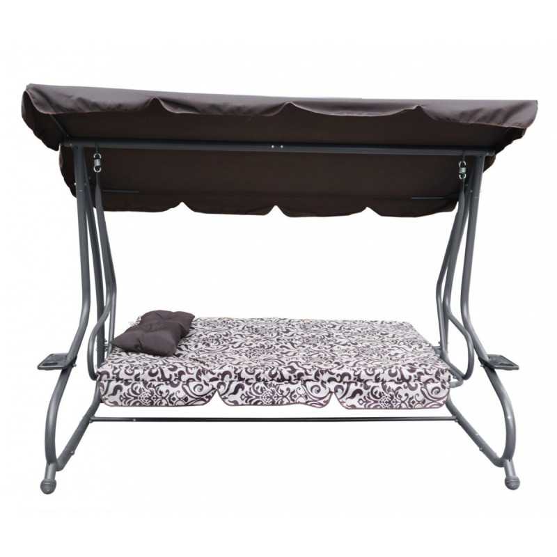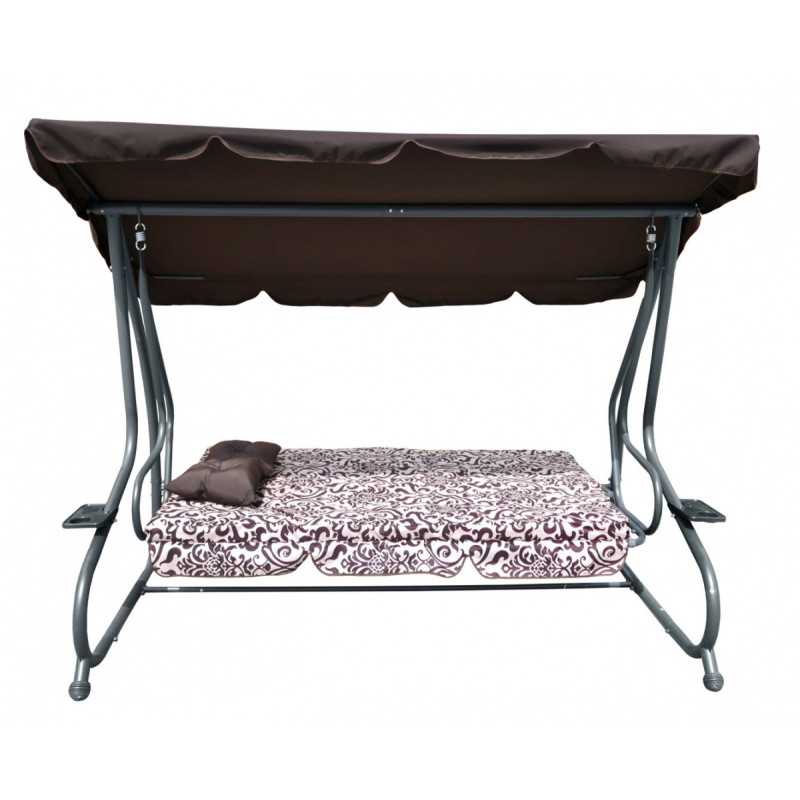 Sodo sūpynės su išlankstoma sėdyne ir reguliuojamu stogeliu,