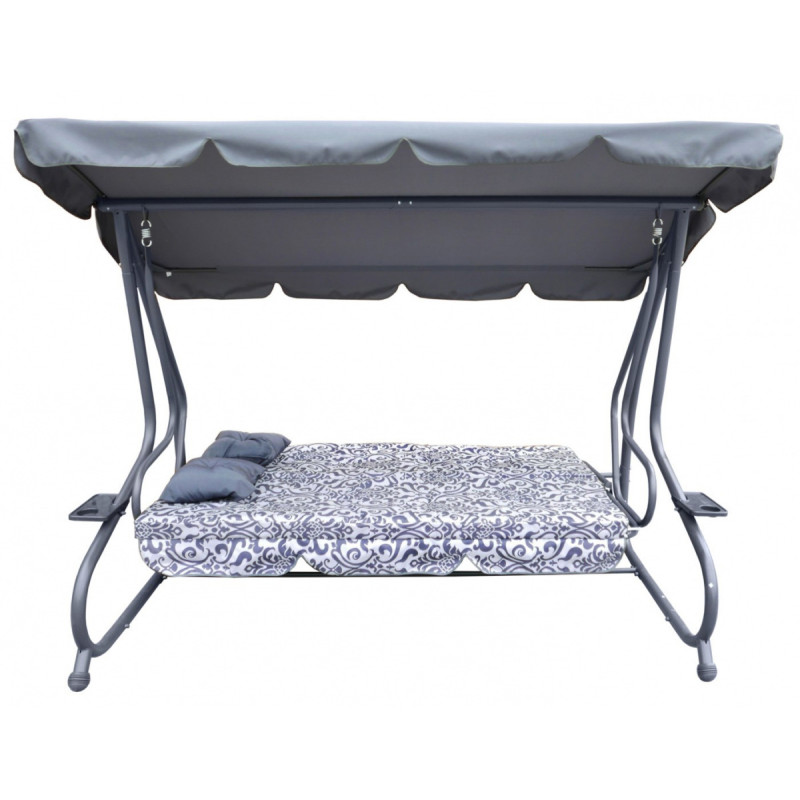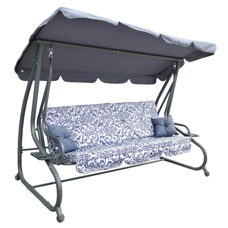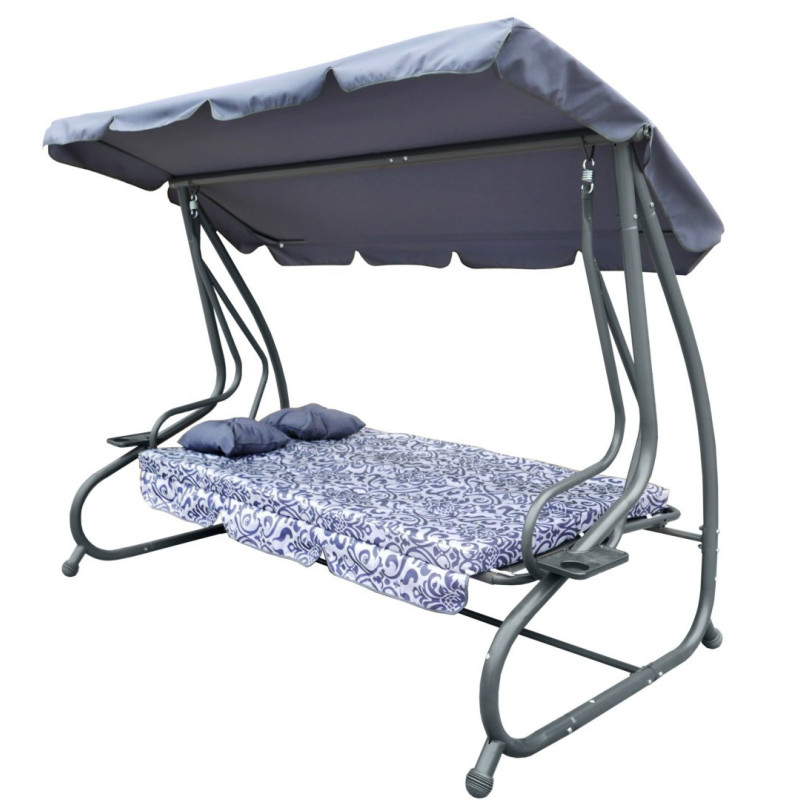 Sodo sūpynės su išlankstoma sėdyne ir reguliuojamu stogeliu,