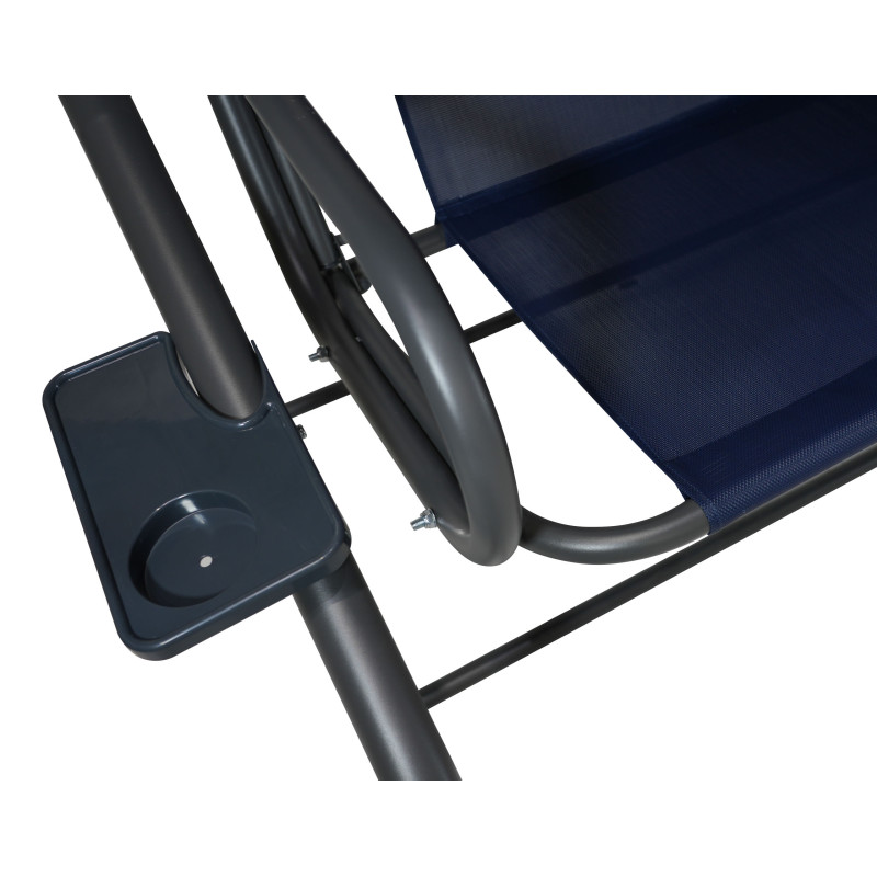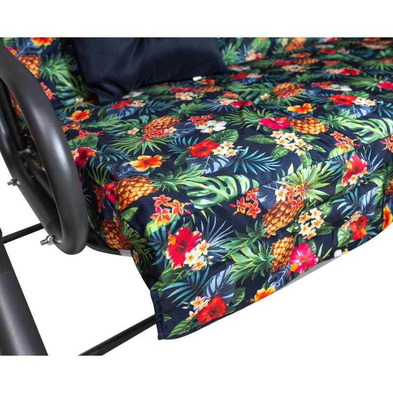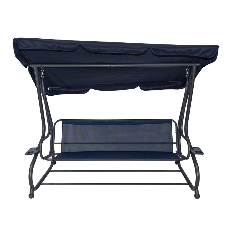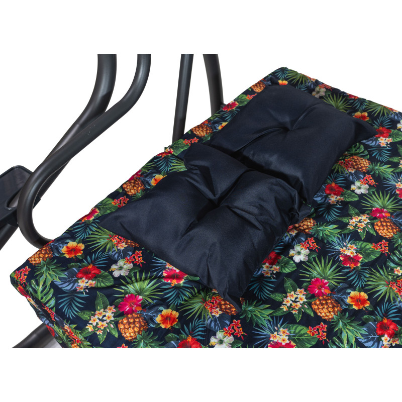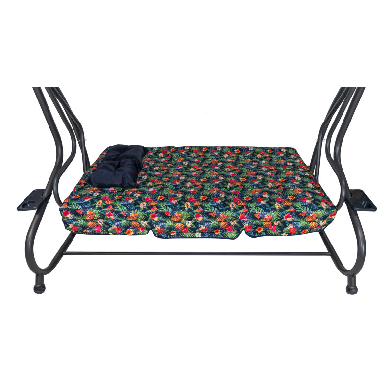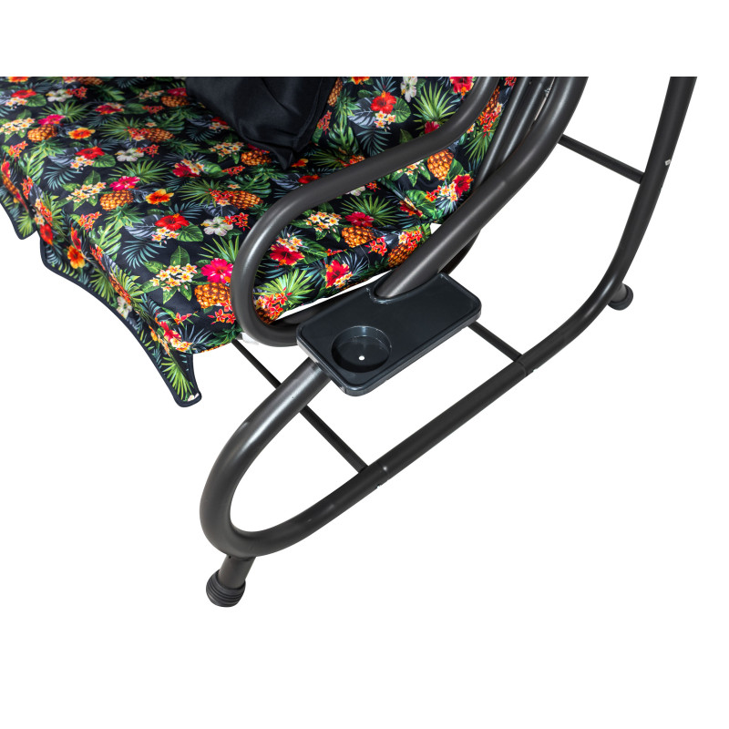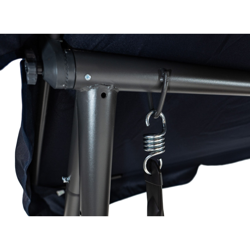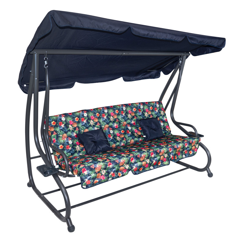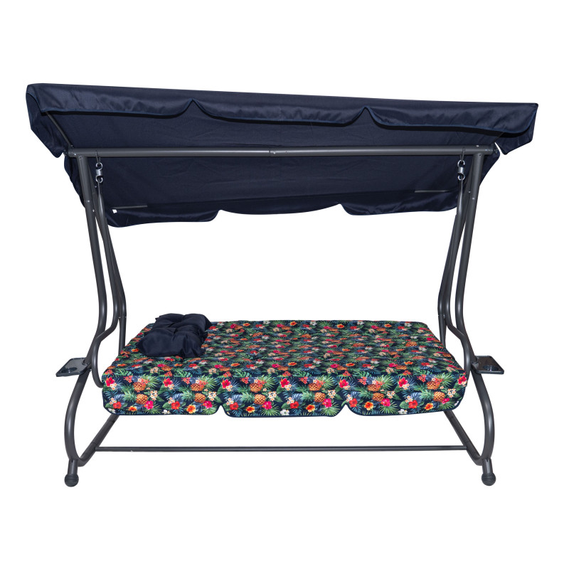 Sodo sūpynės su ištiesiama sėdyne ir reguliuojamu stogeliu,
