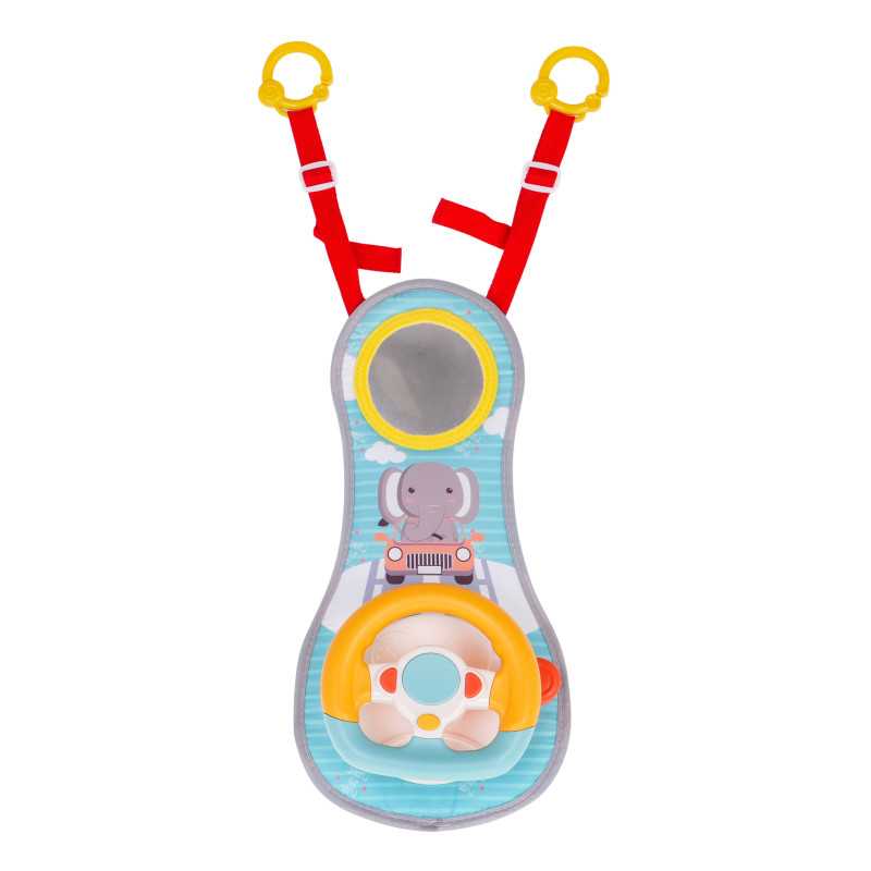 Interaktyvus rinkinys, skirtas vaikams nuo 18 mėnesių amžiaus, ypatingai tinkantis naudoti automobilyje. Jūsų mažylis jausis kaip tikras vairuotojas ir galės mėgdžioti tėvų judesius vairuodamas. Rinkinys skirtas tik į priekį atsuktiems kūdikiams ir neturėtų būti naudojamas su į galą atsuktais kūdikiais. Rinkinį lengva pritvirtinti prie sėdynės galvos atramos. Žaislas stimuliuoja vaiko pojūčių vystymąsi per garsus ir šviesas. Žaislas maitinamas 3 x AA 1, 5 V baterijomis (į komplektą neįeina). | |