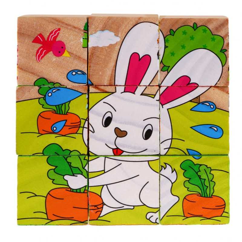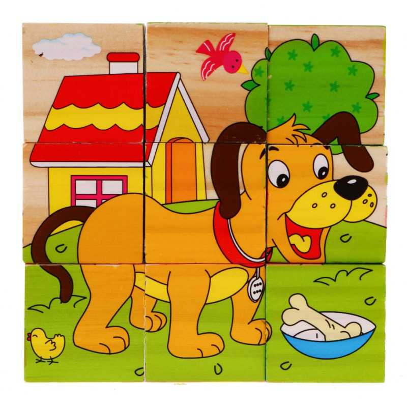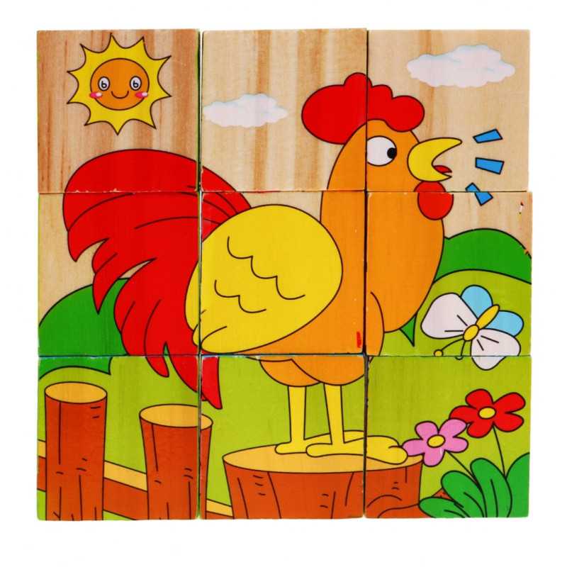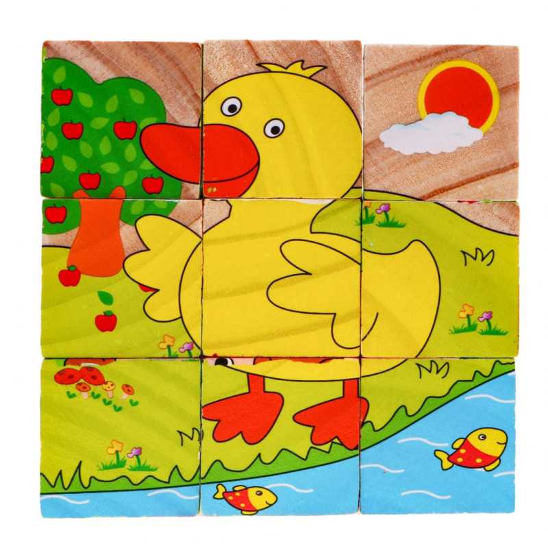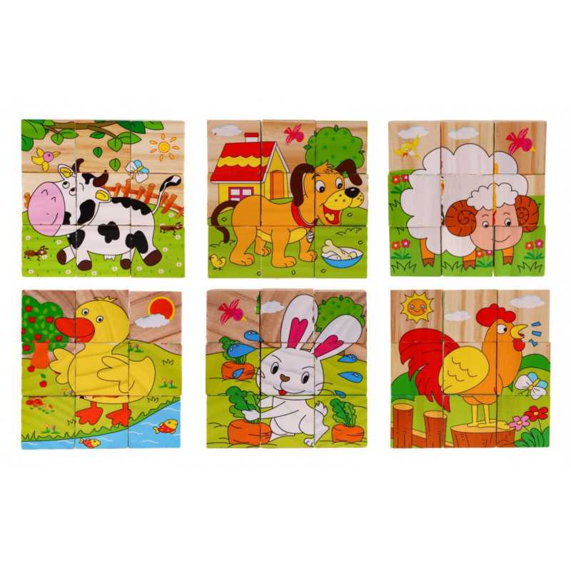 | Medinės kaladėlės su gyvūnų paveikslėliais - tinkamas vaikams nuo 18 mėnesių amžiaus. Kaladėlės yra patvarios ir saugios vaikams. Rinkinį sudaro 9 kaladėlės, iš kurių galima sudėlioti 6 paveikslėlius su gyvūnais: šuo, ėriukas, antis, višta, triušis ir karvė. Vaikų kaladėlių dėliojimas lavina jų vaizduotę ir kūrybiškumą, moko loginio mąstymo ir padeda lavinti rankų darbo įgūdžius. |