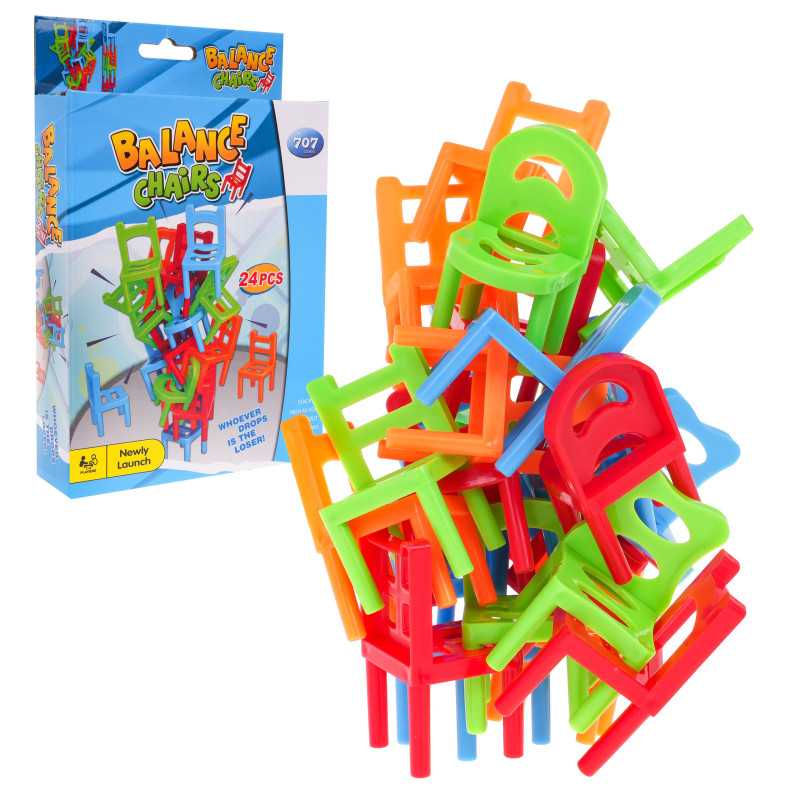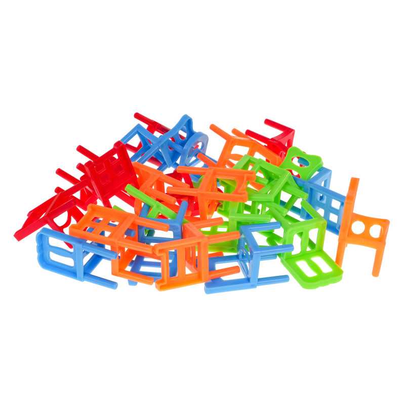 Populiarus kėdžių žaidimas, skirtas vaikams nuo 4 metų. Dėl nedidelio pakuotės dydžio žaidimą galima visur pasiimti su savimi. Rinkinį sudaro 24 kėdutės, 6 skirtingų formų ir 4 spalvų (mėlynos, oranžinės, žalios ir raudonos). Žaidimo metu statomas kėdžių bokštas. Žaidėjai deda kėdes vieną ant kitos. Pralaimi žaidėjas, dėl kurio bokštas sugriūva. Žaidimas moko kantrybės, vikrumo ir atidumo, teigiamai veikia rankų ir akių koordinaciją. | |