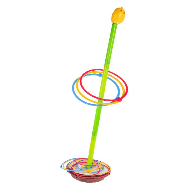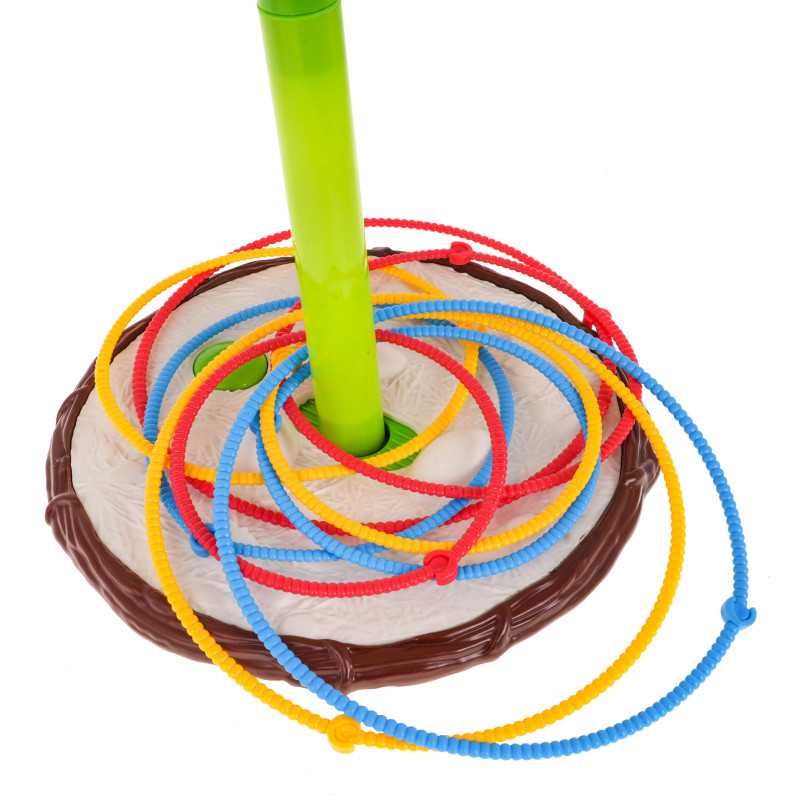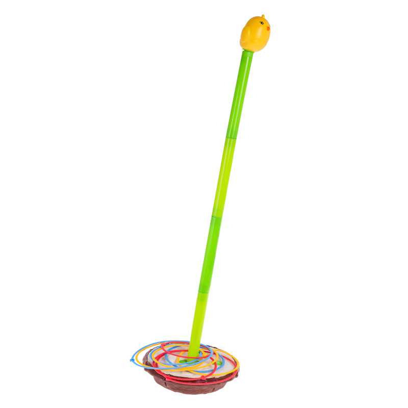 Žaidimas skirtas vaikams nuo 3 metų. Žaidimą gali žaisti du arba trys žaidėjai. Mažas paukštelis arba viščiukas kyburiuoja ant lizdo, o mūsų užduotis - uždėti visus žiedus ant stiebo, priešingai nei atrodo, tai nėra taip paprasta. Žaislas turi 3 aukščio reguliavimo lygius, kuo aukštesnis stiebas, tuo aukštesnis sudėtingumo lygis. Didžiausias stiebo aukštis - 90 cm. Jį galima sumažinti atimant elementą. Kiekvienas stiebo elementas yra maždaug 19, 5 cm ilgio. Lankai yra trijų skirtingų dydžių, kuo mažesnis lankas, tuo sunkiau pataikyti. Žaidimas lavina refleksus, koncentraciją, tikslumą ir padeda lavinti akies ir rankos koordinaciją. Žaidimą maitina 2 x C (R14) 1, 5 V baterijos, kurios į rinkinį neįeina. Žaidimo taisyklės: