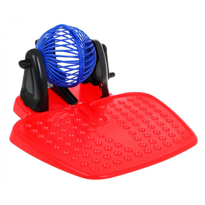 | - pagrindas su piešimo mašina ir ištraukiama numeruota lenta, - 48 kortelės, - 90 numeruotų kamuoliukų, - 100 žetonų skaičiams uždengti, | |