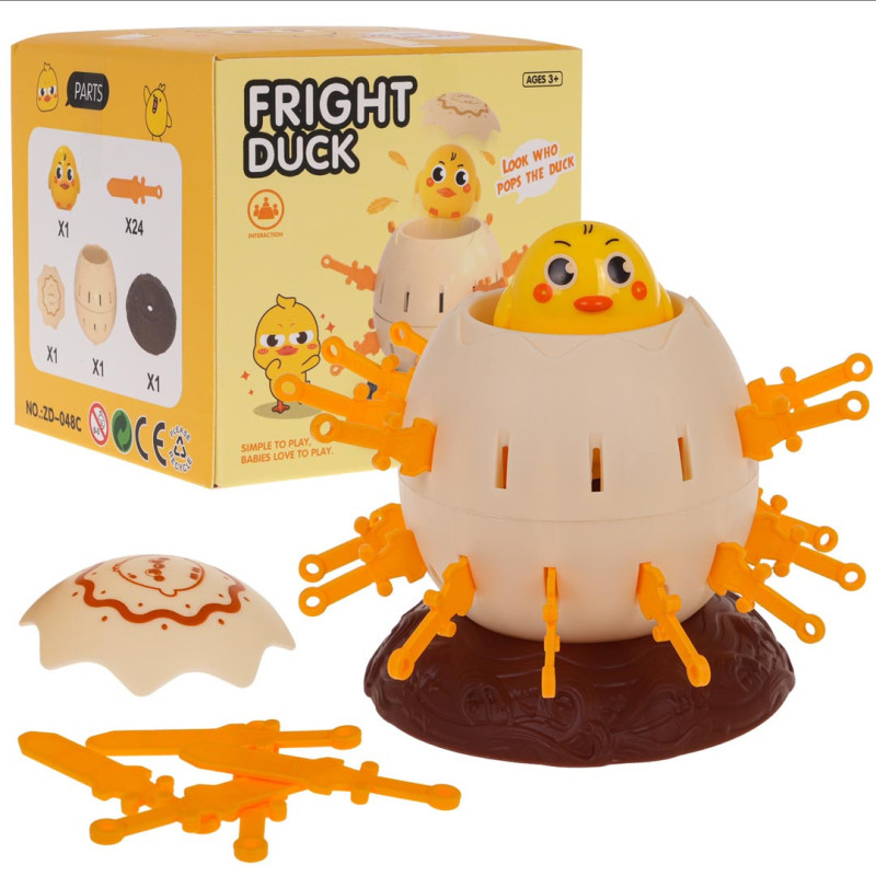 Jumping Duck įgūdžių žaidimas vaikams nuo 3 metų amžiaus. Šiame smagiame žaidime ant pagrindo reikia padėti kiaušinį su viduje esančia antimi ir paspausti mechanizmą. Tada kiekvienas žaidėjas gauna kalavijus ir po vieną juos įkiša į kiaušinio skylutes. Būkite atsargūs, kad nepataikytumėte į kiaušinio viduje esančią antį. Priešingu atveju ji iššoka iš kiaušinio kaip iš prakartėlės. Laimi tas, kuris pirmas į kiaušinį įkiša visus kardus arba daugiau už priešininką, kol antis iššoka. Žaidimo ypatybės: - skirta vaikams nuo 3 metų ir suaugusiems, - puikiai pagamintas, - padeda atsipalaiduoti, - puikus būdas praleisti laiką kartu, - puikus būdas nuobodžiauti arba atitraukti vaikus nuo kompiuterių, telefonų, planšetinių kompiuterių. | |