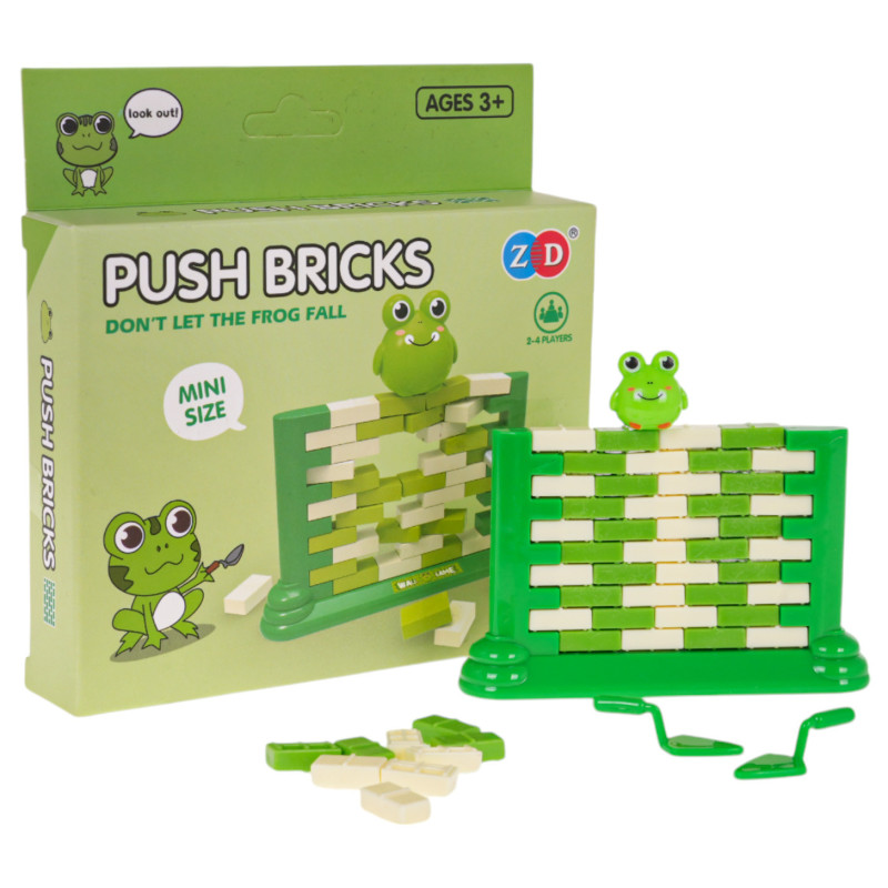 Sienos įgūdžių žaidimas vaikams nuo 3 metų amžiaus. Žaidime reikia statyti sieną iš kaladėlių ant specialiai sukurto pagrindo, o paskui stumdyti atskiras plytas iš sienos specialiai sukurta mentele. Ant sienos viršaus yra varlės figūrėlė, turime būti atsargūs, kad ji nenukristų. Laimi tas, kuris išstumdamas plytas nesukelia sienos griūties ir varlės kritimo. Žaidimą galima žaisti vienam arba su daugiau žmonių. Žaidimas moko susikaupimo, loginio mąstymo ir gerina rankų ir akių koordinaciją. Žaidimo ypatybės: - skirta vaikams nuo 3 metų ir suaugusiems, - puikiai pagamintas, - puikiai lavina įgūdžius ir kantrybę, - lavina koncentraciją ir loginį mąstymą, - padeda atsipalaiduoti, - puikus būdas praleisti laiką kartu, - puikus būdas nuobodžiauti arba atitraukti vaikus nuo kompiuterių, telefonų, planšetinių kompiuterių. | |