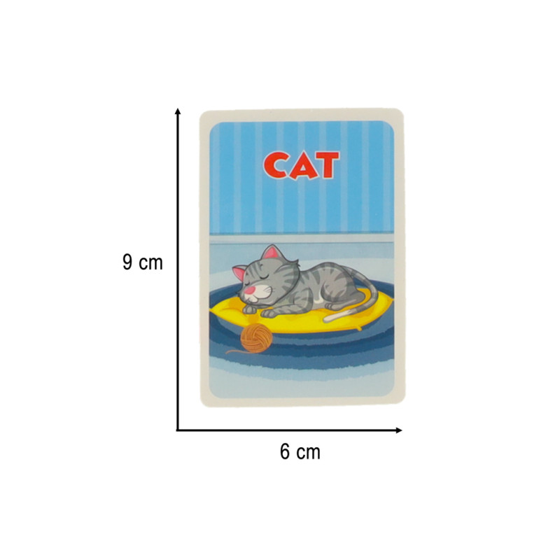 Kortelės matmenys: Žaidybinės kortos: 6 cm x 9 cm
