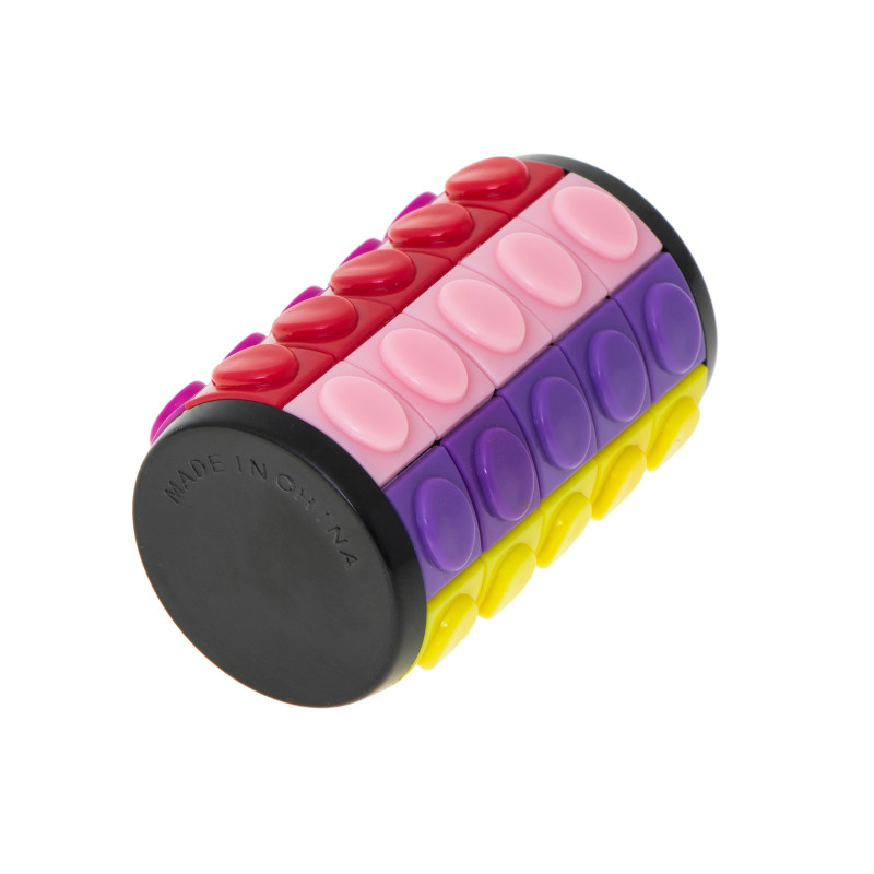 Žiedus galima laisvai sukti, o spalvotus kubelius perstatyti.