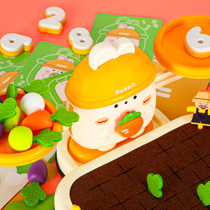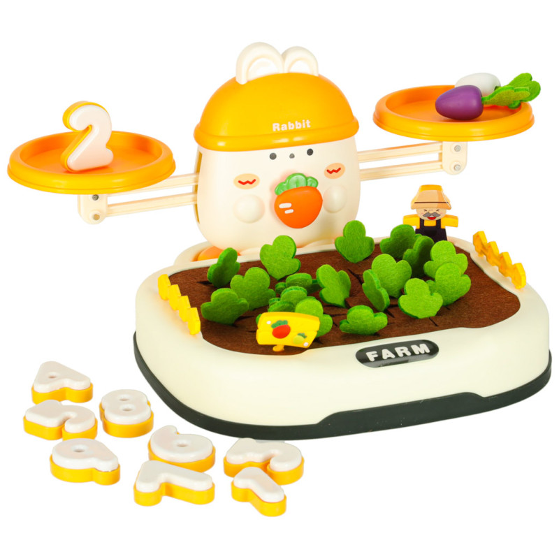 Komplekto viršuje karaliauja žavus triušis, kuris "saugo" pusiausvyrą. Vaikas gali krauti morkas ar kitus daiktus, stengdamasis išlaikyti pusiausvyrą arba sąmoningai ją pažeisti, tuo pačiu mokydamasis fizikos pagrindų ir loginio mąstymo. Rinkinyje taip pat yra specialūs skaičiai - kiekvienas skaičius turi atitinkamą svorį, atitinkantį vaizduojamą skaičių. Taip mažylis gali eksperimentuoti, lyginti svorius ir praktiškai mokytis skaičių reikšmių! Šis žaidimas puikiai padeda mokytis skaičiuoti ir pagrindinių matematinių sąvokų.