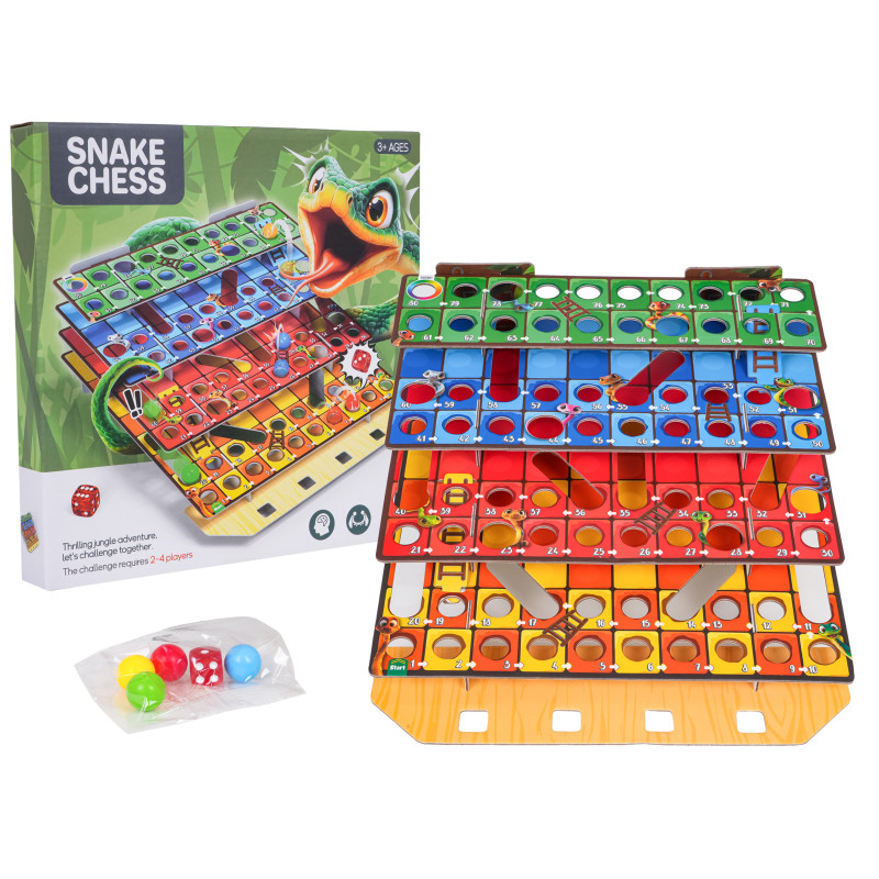 | Klasikinis žaidimas "Gyvatė ir kopėčios", šį kartą - nauja 3D versija, skirta vaikams nuo trejų metų. Žaidimą, pagamintą iš aukščiausios kokybės ir ryškių spalvų medžiagų, sudaro 3D lenta su keturiais lygiais, kauliukas ir pėstininkai. Gali žaisti du ar daugiau žaidėjų. Kiekvienas žaidėjas pradeda nuo pradinės pozicijos ir perkelia savo pėstininką tiek, kiek langelių nurodo kauliukas. Jei žaidėjas atsiduria ant laukelio su kopėčiomis, jis lipa aukštyn; jei atsiduria ant gyvatės galvos, jis atsiduria ant jos uodegos. Laimi žaidėjas, kuris pirmas pasiekia lentos galą. Žaidimo ypatybės: - vaikams nuo trejų metų ir suaugusiems, - pagamintas iš geriausios kokybės medžiagų, - puikiai tinka šeimos vakarams ar susitikimams su draugais, - 3D versija su keturiais aukštais, - spalvų gausa. |