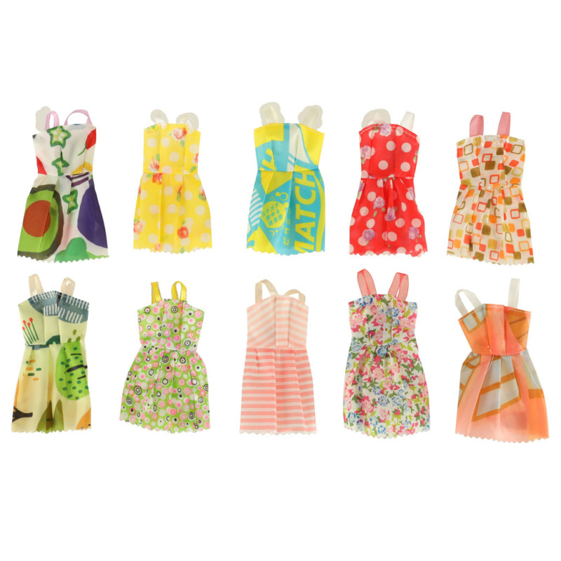 - 10 suknelių lėlėms (13 cm ilgio),