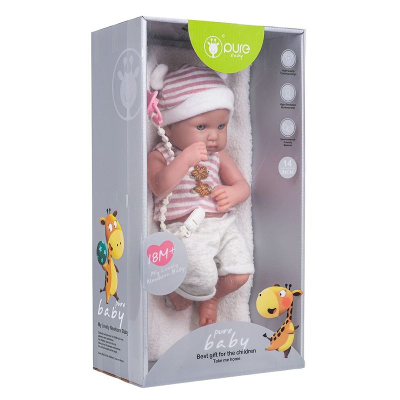 Graži, realistiškai pagaminta lėlė kūdikis su priedais, skirta vaikams nuo trejų metų amžiaus. Lėlė aprengta kepure, marškinėliais ir šortais. Ji turi judančias rankas bei kojas ir yra labai minkšta liesti. Rinkinyje yra čiulptukas ant virvelės ir minkšta antklodė. Lėlė atrodo neįtikėtinai realistiškai – visai kaip tikras kūdikis.