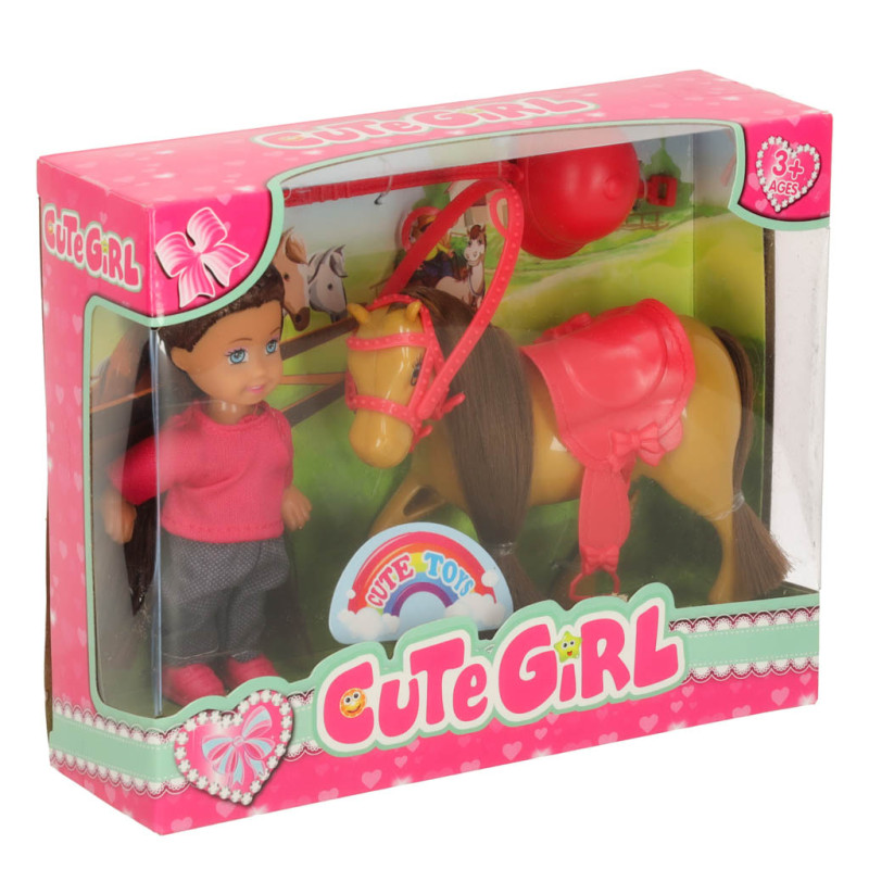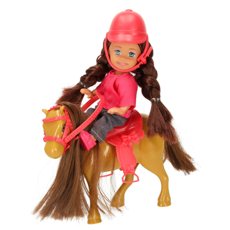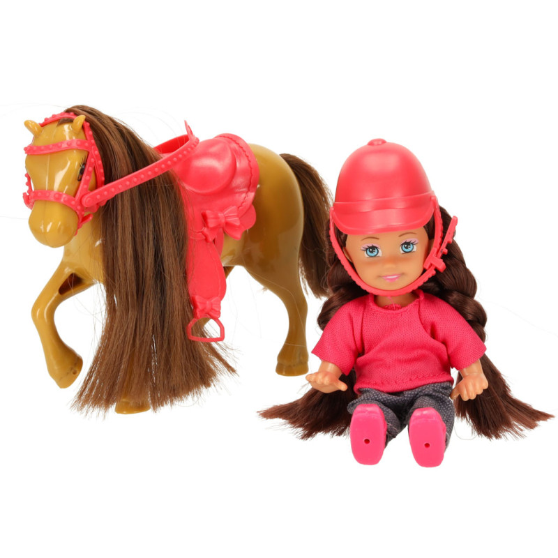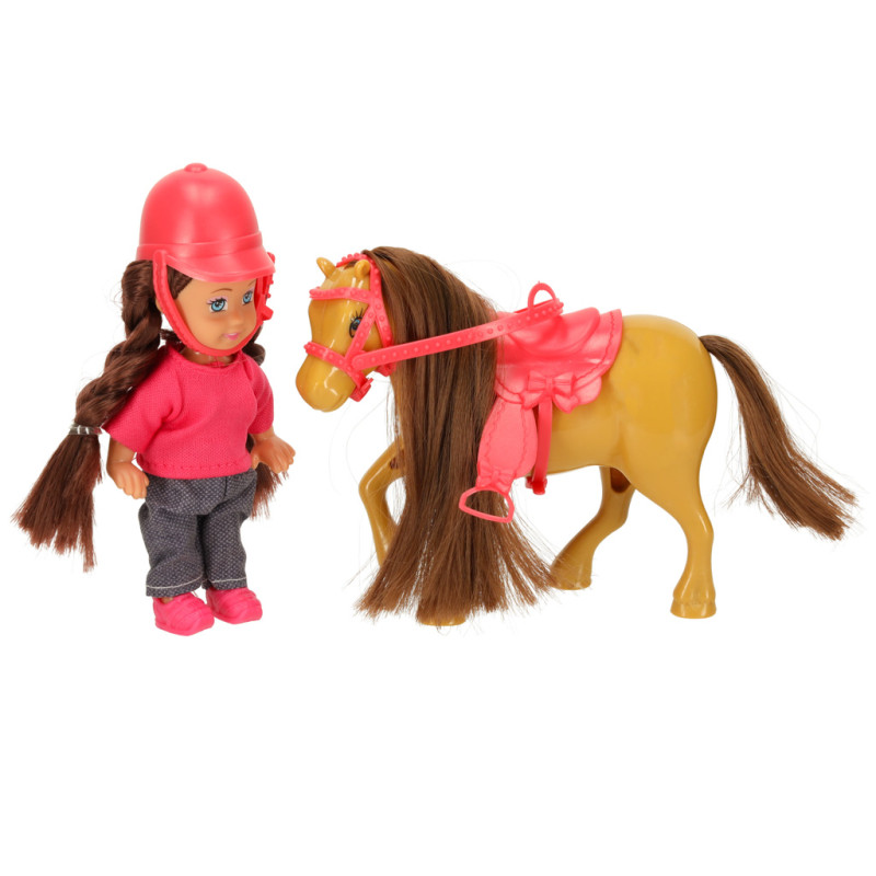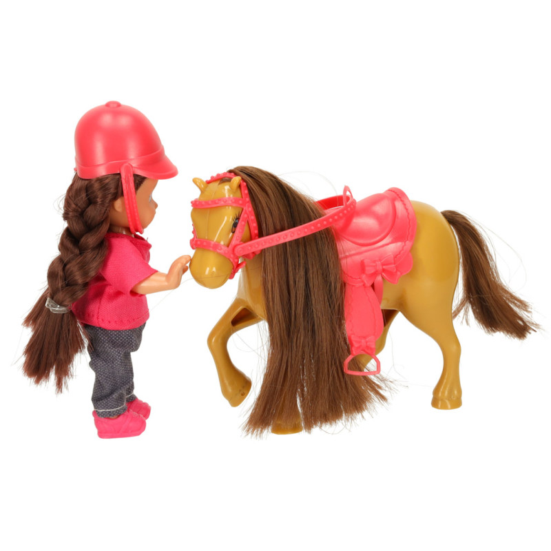 Žaislų rinkinys, kurį sudaro lėlė su arkliu rudos ir rožinės spalvų gamoje, į žaidimą įneš nuotykių atmosferos. Lėlė turi ilgus rudus plaukus ir mėlynas akis. Ji dėvi rožinę palaidinę, užsegamą nugaroje, ir užsimaunamus batelius, bei tamsias kelnes su subtiliu raštu. Lėlę galima aprengti mažais drabužėliais arba uždėti jai rinkinyje esančią kepuraitę. Arklys dėžutėje turi pritvirtintus pavadžius ir balną, kuriuos galima lengvai nuimti. Žaislai pagaminti iš saugių ir netoksiškų medžiagų – jie turi CE sertifikatą.