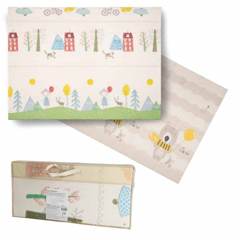 Didelis sulankstomas putplasčio kilimėlis natūraliai palaiko motorikos vystymąsi, skatindamas riedėti, sėdėti ir atsistoti. Spalvingas lavinamasis kilimėlis traukia akį, o dėl dizaino su žaviais gyvūnais vaikas noriai leis laiką savo veiklos zonoje. Minimalistinis dizainas ir moderniai išdėstyti raštai tinka visiems interjerams.