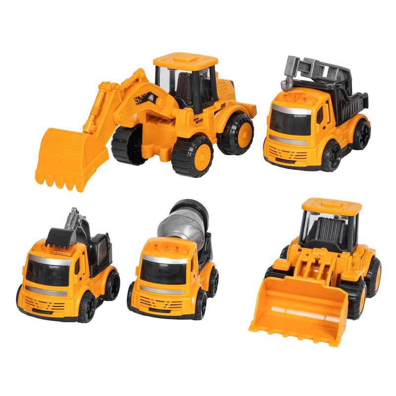 Penkių statybinių transporto priemonių rinkinys, skirtas vaikams nuo trejų metų amžiaus. Transporto priemonės pagamintos iš aukščiausios kokybės medžiagų, skiriant didelį dėmesį detalėms, ir turi judančias dalis. Tai idealus rinkinys žaidimams tiek viduje, tiek lauke.